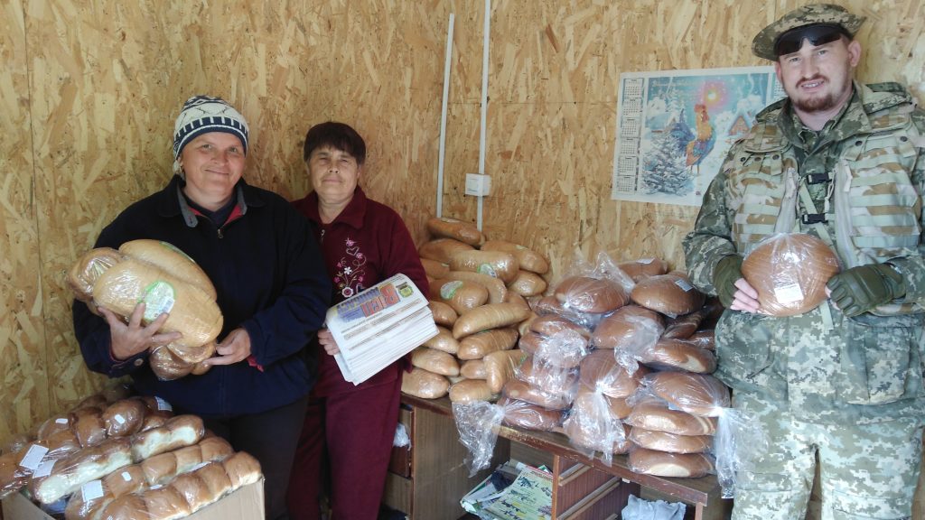 Вместе с офицером группы ЦВС «Авдеевка» доставили свежий хлеб и газеты «Вісті Донбасу» в прифронтовой поселок Каменка и село Веселое.
