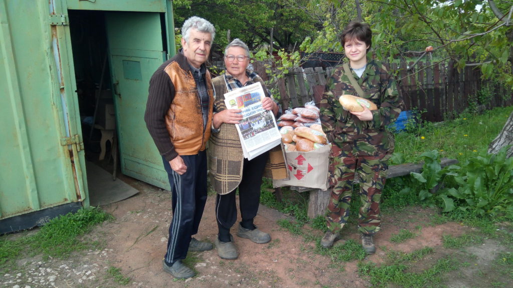 Доставила свежий хлеб жителям прифронтовых сёл Водяное (район ДАП) и Веселое (район Авдеевки) По дороге завезла газеты «Вісті Донбасу» в село Галициновка.