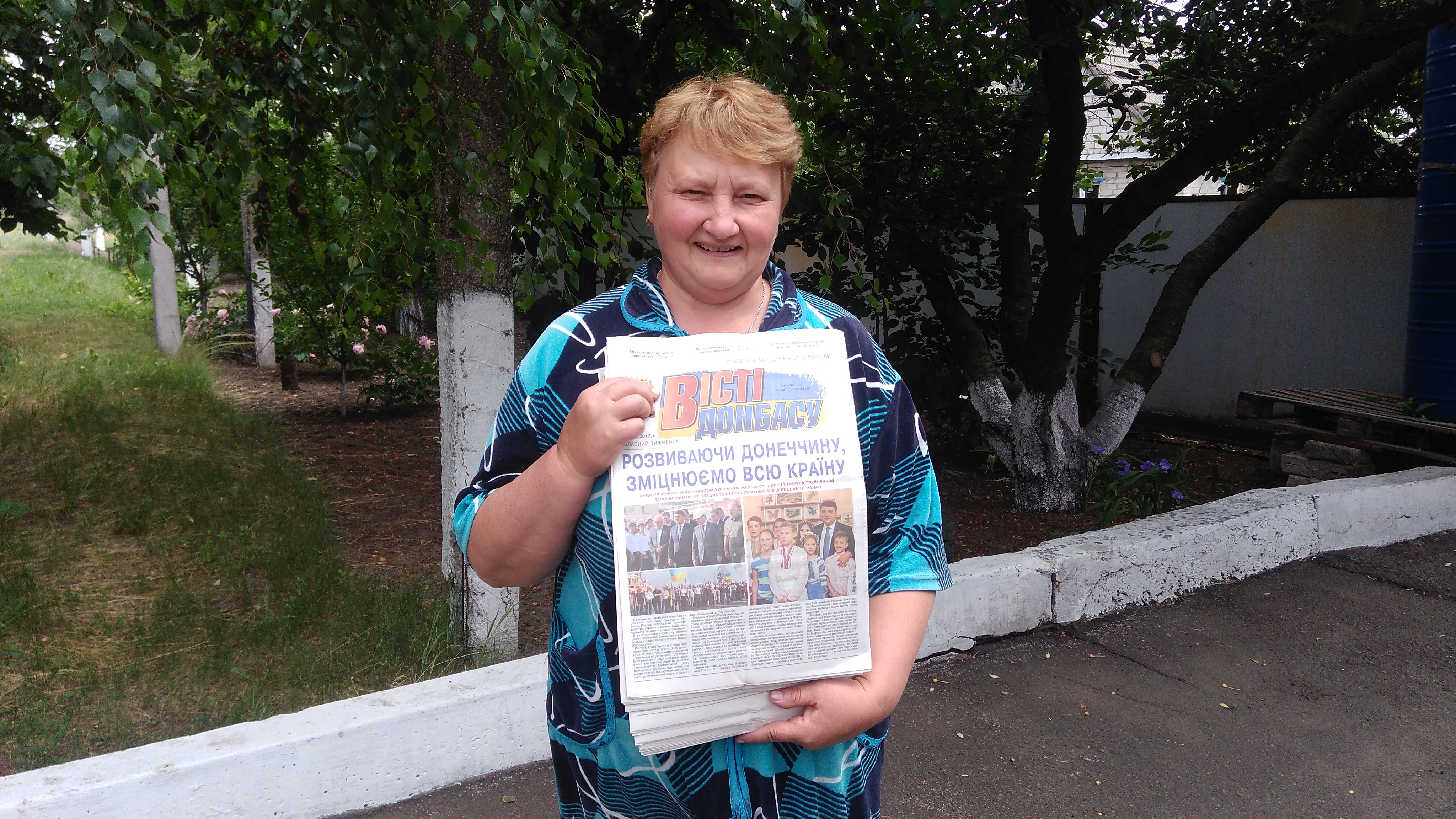 Доставила газеты «Вісті Донбасу» в прифронтовые села Донецкой области: Первомайское, Водяное, Тоненькое, Карловка, Нетайлово, Ласточкино, Новобахмутовка, Александрополь, Галициновка, Уманское, а также в посёлки: Орловка и Красногоровка