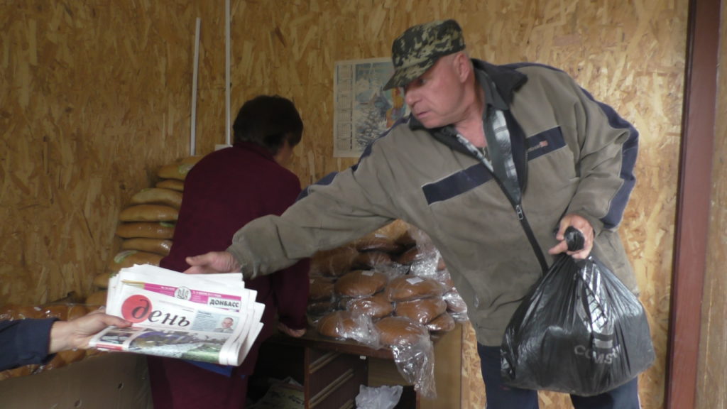 Вместе с офицером группы ЦВС «Авдеевка», привезли газеты «Вісті Донбасу», «День», «Факты» и свежий хлеб в прифронтовой поселок Каменка и в село Веселое! Ситуация в районе Каменки-Авдеевки остаётся напряженной. Во время раздачи хлеба несколько раз были слышны взрывы!