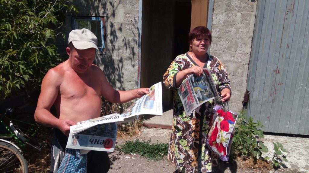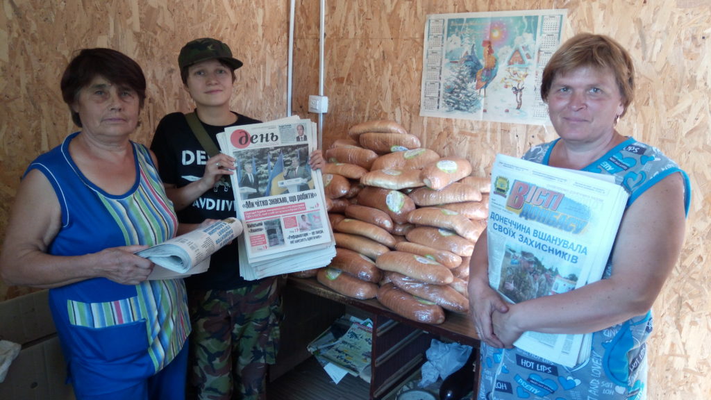 Сегодня вместе с офицером группы СІМІС «Авдеевка» привезли газеты «День», «Вісті Донбасу» и «Донбасс Информ» в прифронтовой поселок Каменка и село Веселое! Кроме газет передали мешок муки в Веселое и свежий хлеб в Каменку.