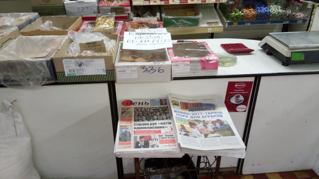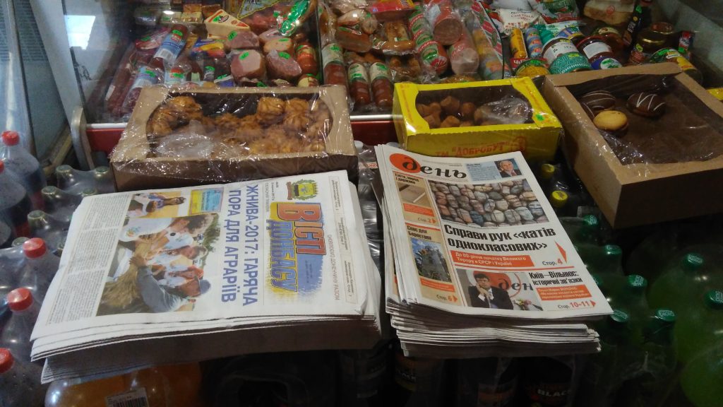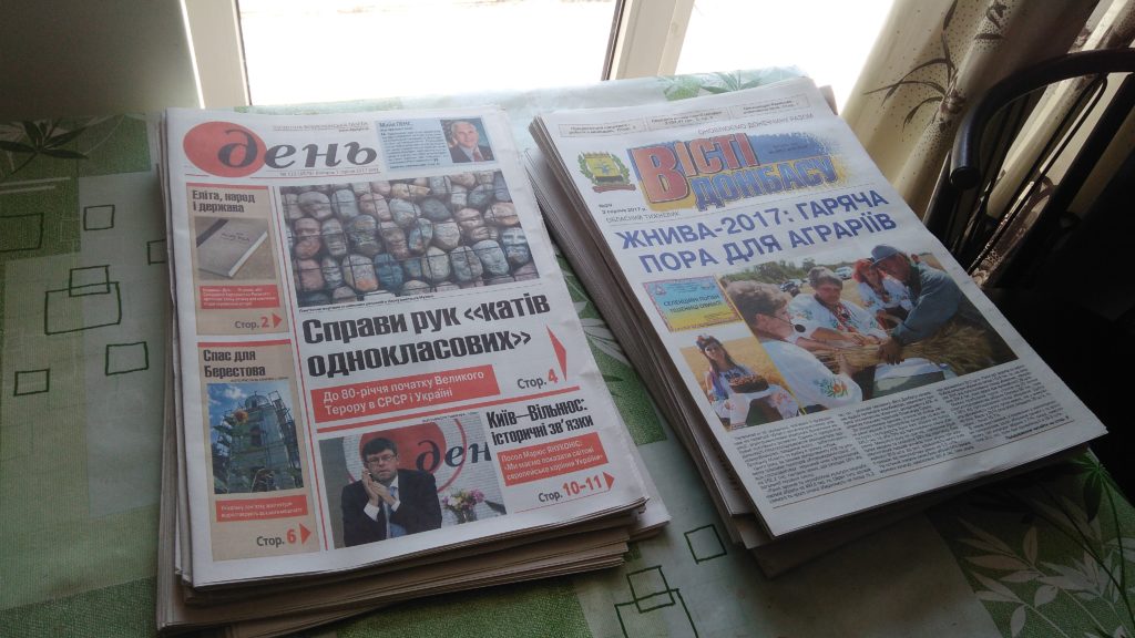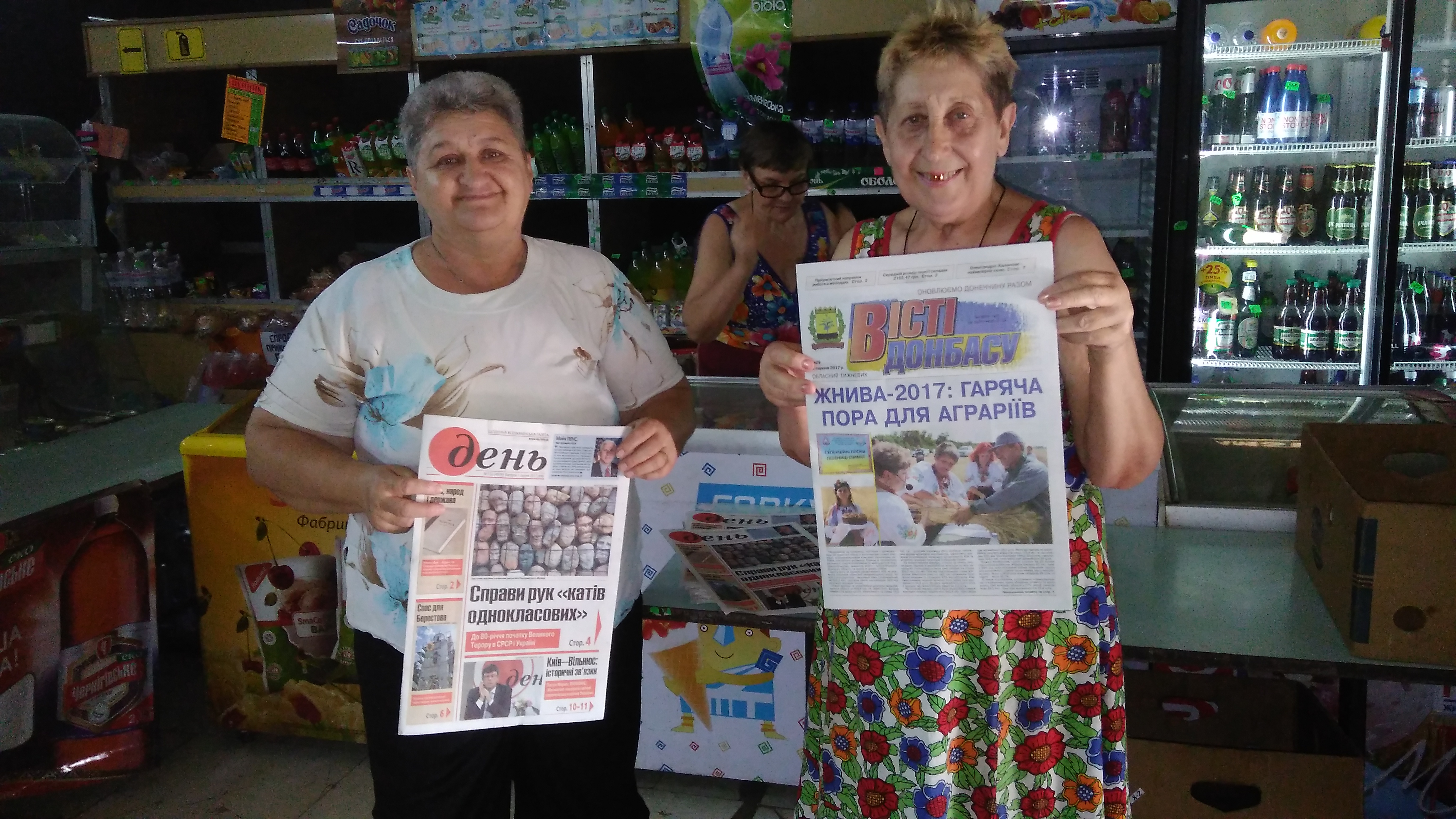 Вчера вместе с офицером группы СІМІС «Авдеевка» доставили газеты «Вісті Донбасу» и «День» жителям прифронтовых посёлков: Верхнеторецкое, Новгородское, Красногоровка (Ясиноватский р-н), Орловка и Керамик, а также в сёла: Пески, Первомайское, Тоненькое, Новосёловка, Троицкое, Александрополь, Ласточкино и Семёновка.
