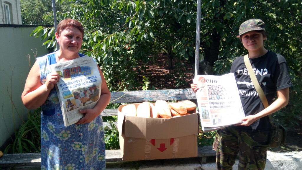 Привезла свежий хлеб и газеты «День», «Вісті Донбасу» жителям прифронтовых сёл: Каменка, Веселое и Водяное (район ДАП).