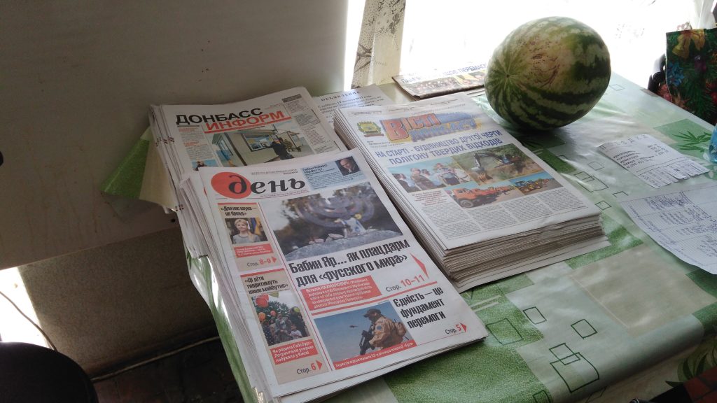 Вместе с офицером группы СІМІС «Авдеевка» доставили газеты «Вісті Донбасу», «День» и «Донбасс Информ» жителям прифронтовых посёлков: Верхнеторецкое, Новгородское, Красногоровка и Керамик, а также в сёла: Новосёловка, Троицкое, Александрополь и Семёновка.