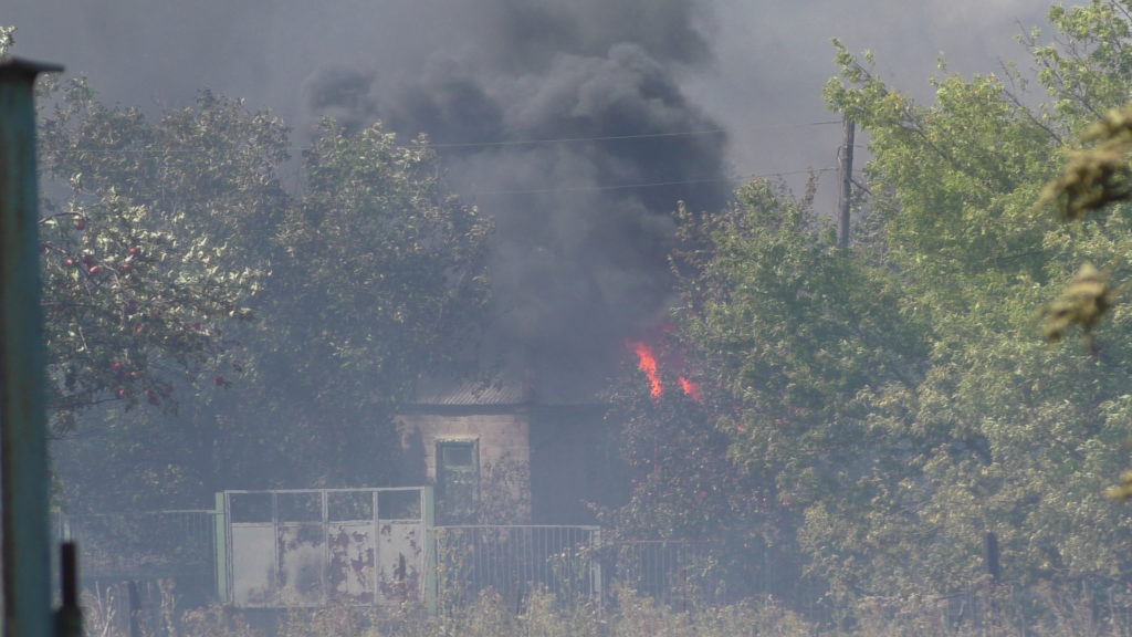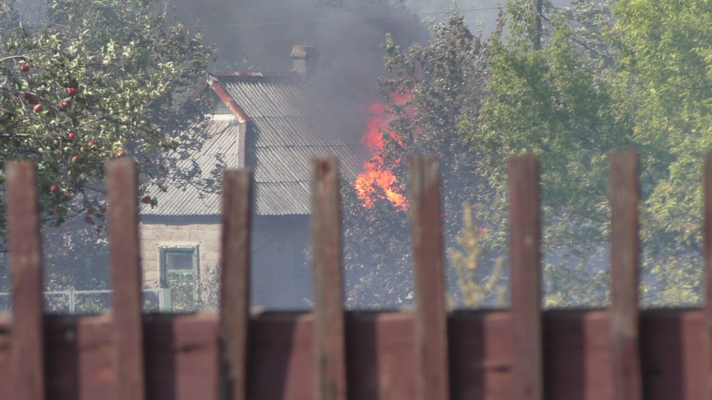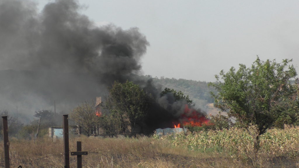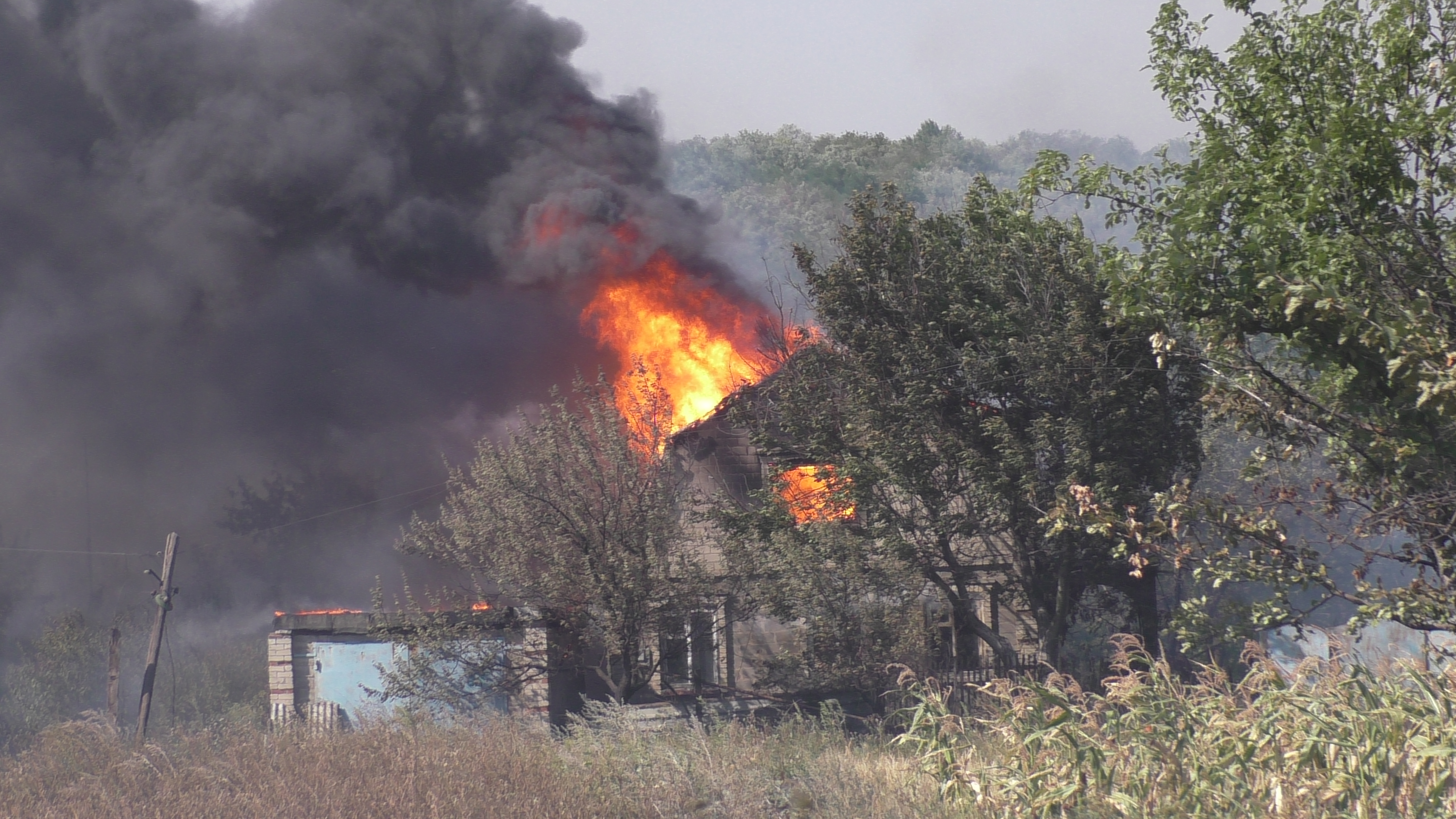 Село Веселое расположено в считанных километрах от линии фронта, из-за непрекращающихся боевых действий многие дома пустуют и дворы сильно заросли. На момент приезда первого пожарного расчета уже горели три нежилых дома.