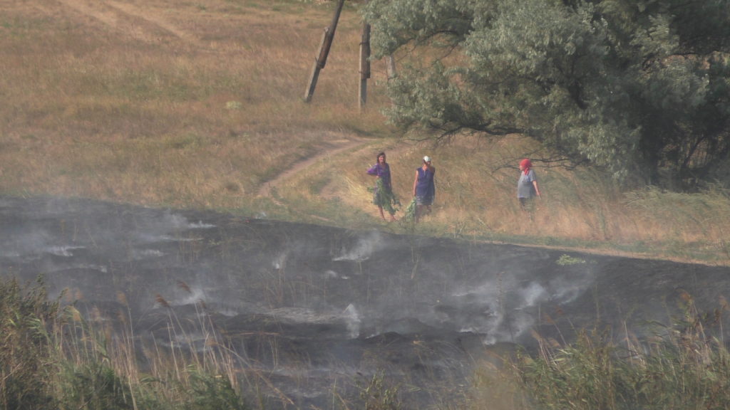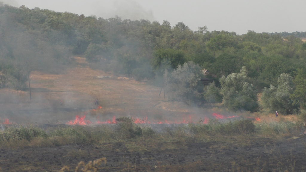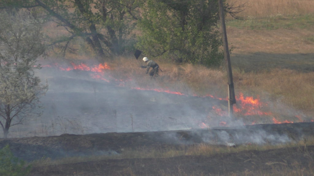 Сегодня днем, примерно в 13 часов 30 минут, загорелась сухая трава в прифронтовом селе Веселое Ясиноватского района Донецкой области. Местные жители пытались самостоятельно потушить пожар подручными средствами, но из-за жары и сильного ветра огонь в считанные минуты распространился по селу.
