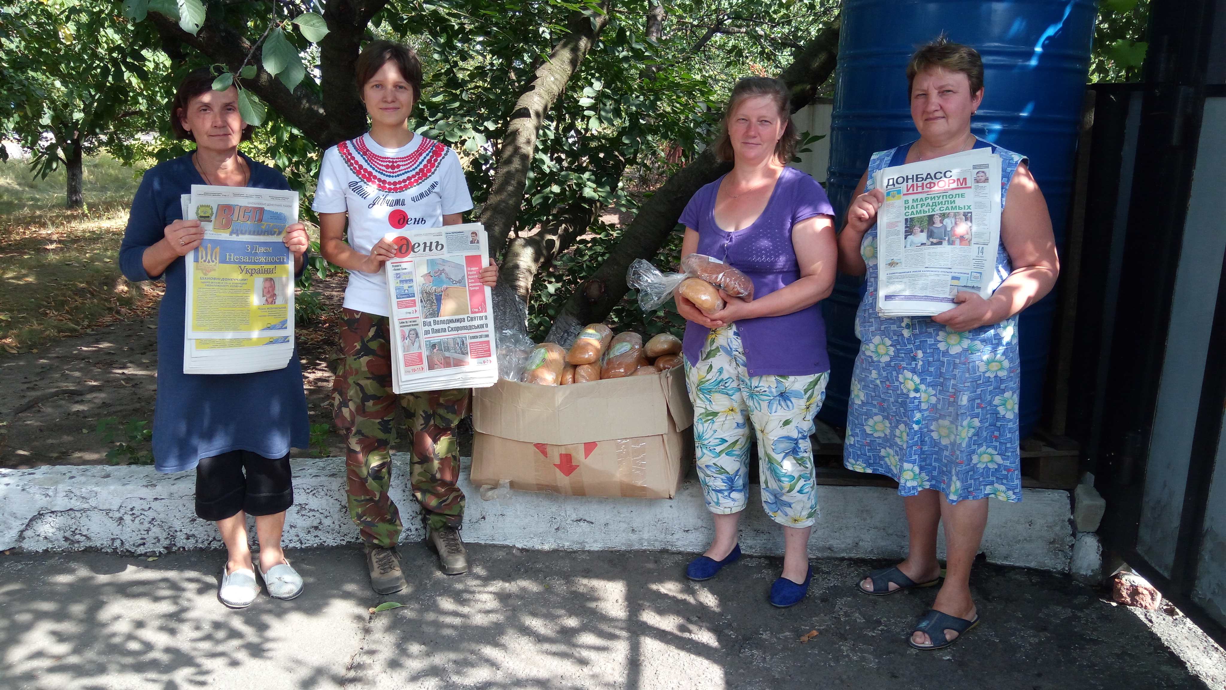 Сегодня привезла хлеб и газеты «День», «Вісті Донбасу» и «Донбасс Информ» жителям прифронтового села Водяное (район ДАП).