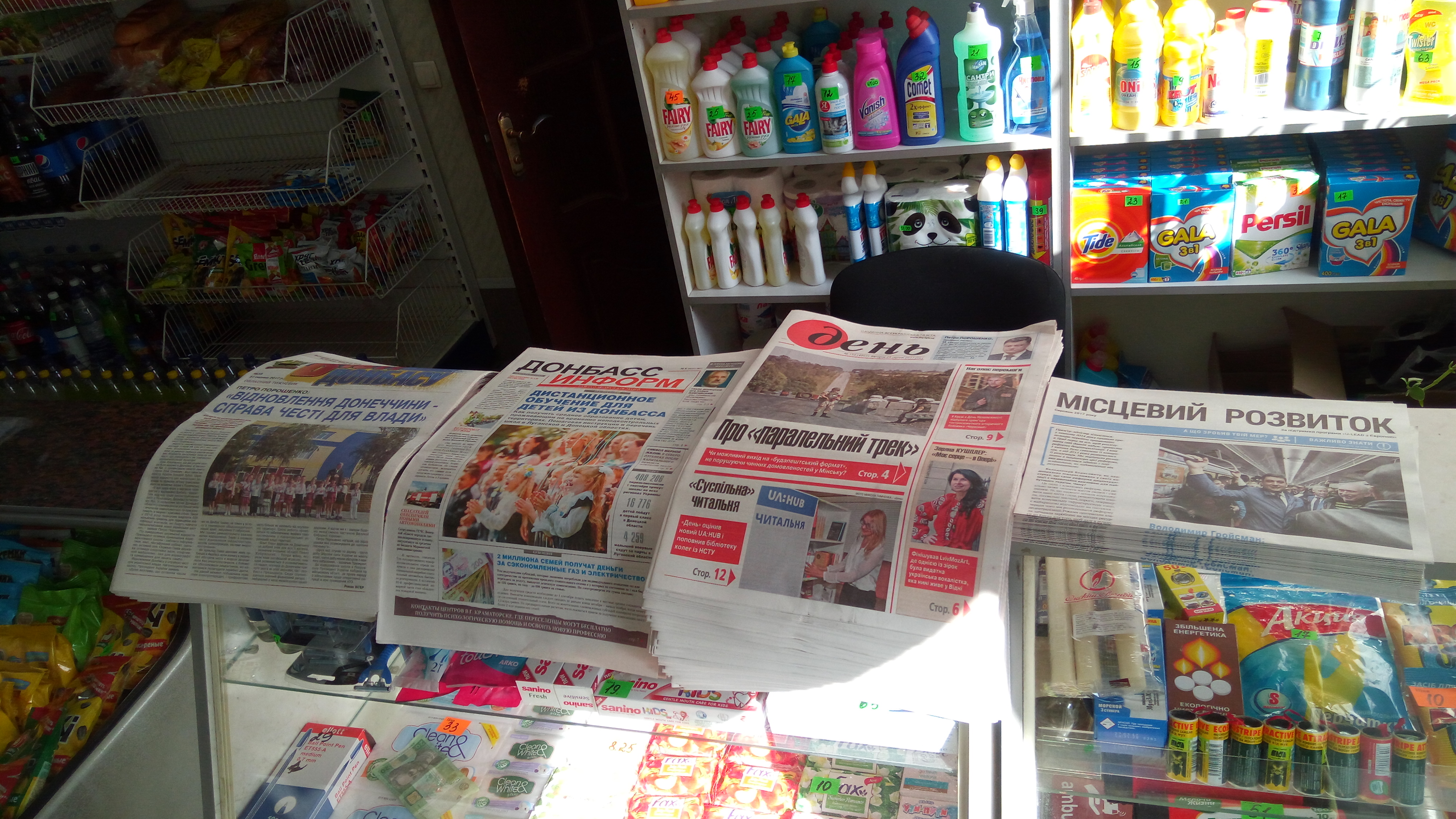 Сегодня доставила украинские газеты «Вісті Донбасу», «День», «Донбасс Информ» и «Місцевий розвиток» в прифронтовые города Марьинка и Красногоровка, а так же в сёла Георгиевка, Максимильяновка, Желанное.