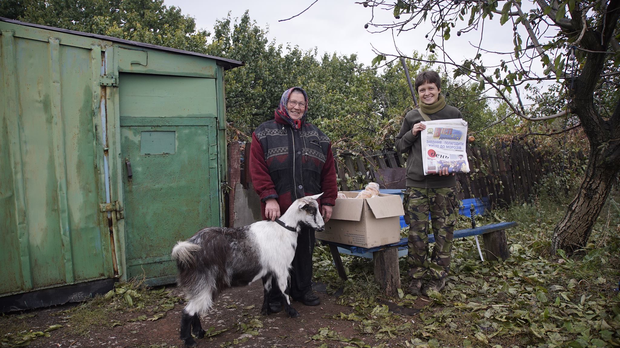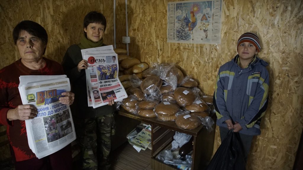 Привезла свежий хлеб и газеты «День» и «Вісті Донбасу» жителям прифронтового посёлка Каменка и села Весёлое!