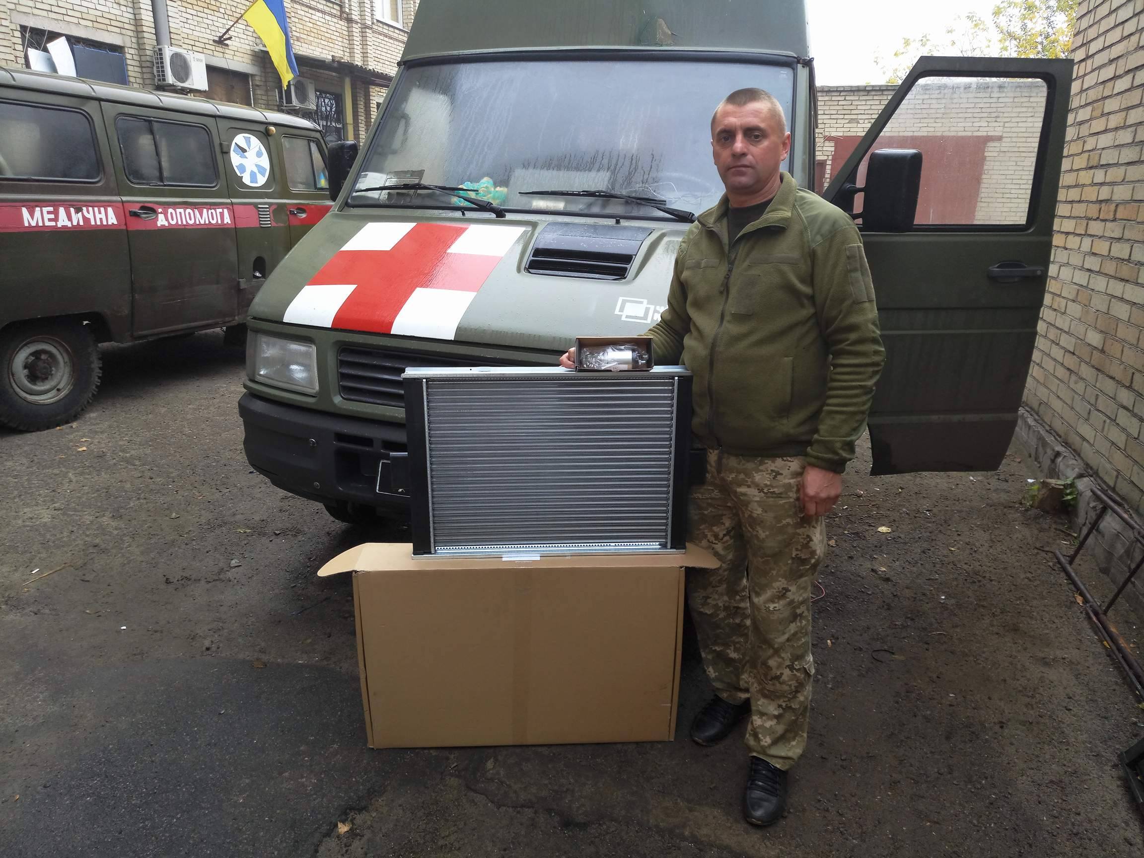 Передала военным медикам радиатор и втягивающее реле для автомобиля Скорой помощи, работающего на передовой.