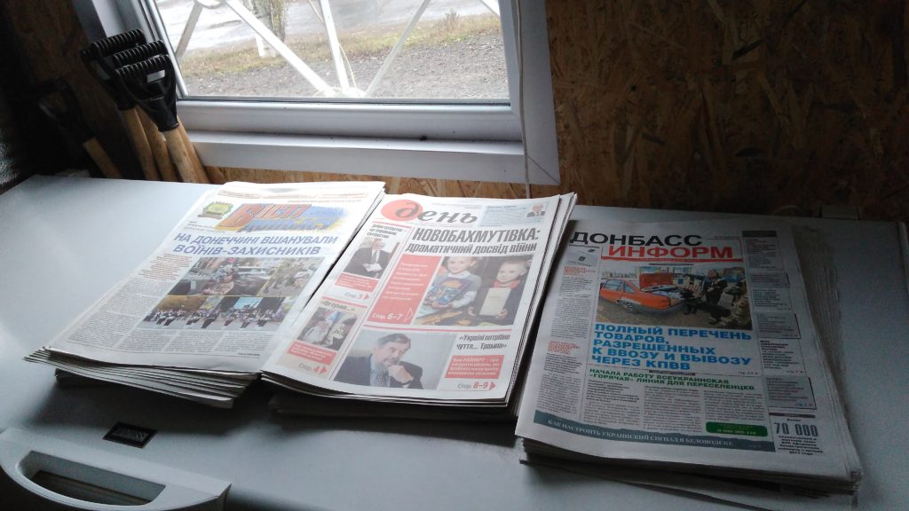Друзья! Несмотря на проводимые в зоне АТО работы по восстановлению теле- и радиовещания, многие жители прифронтовых городов и сёл до сих пор не имеют доступа к украинским СМИ, а эфир забит российскими и «днр»-овскими каналами. Начиная с октября 2017 года, я каждую неделю доставляю 7000 газет «День» на украинском языке в прифронтовые города и сёла от Марьинки до Торецка.