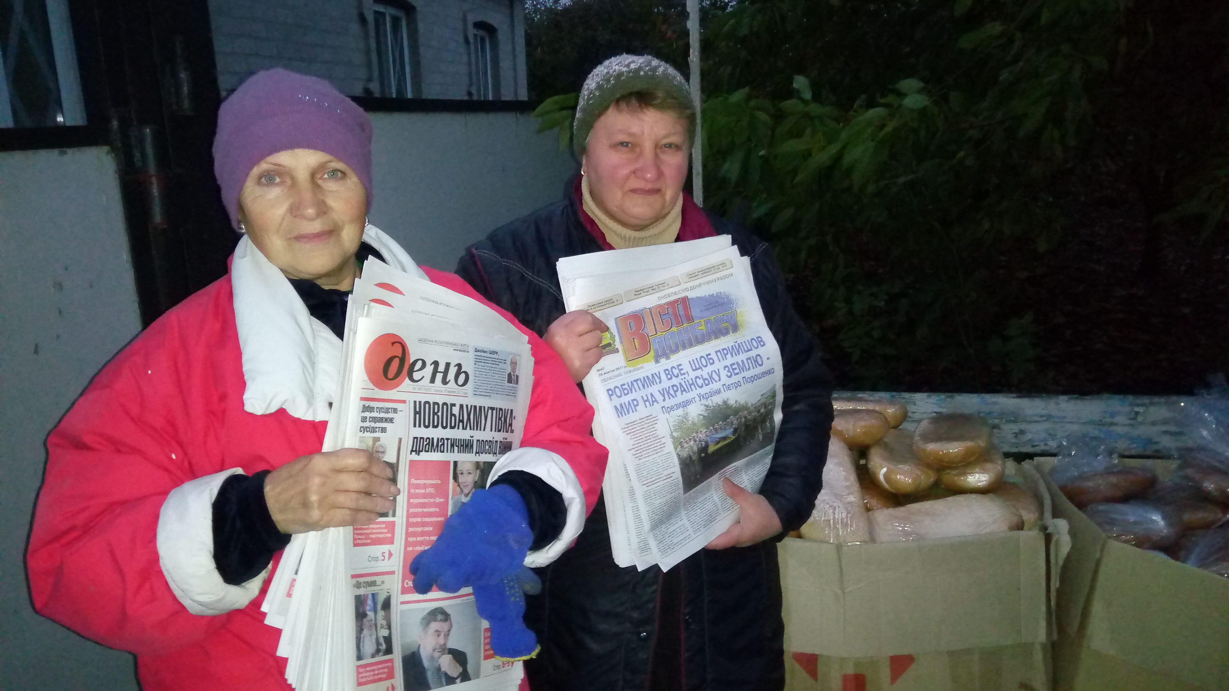 В среду 25 октября привезла свежий хлеб и газеты «День» и «Вісті Донбасу» жителям прифронтового села Водяное (район ДАП)!