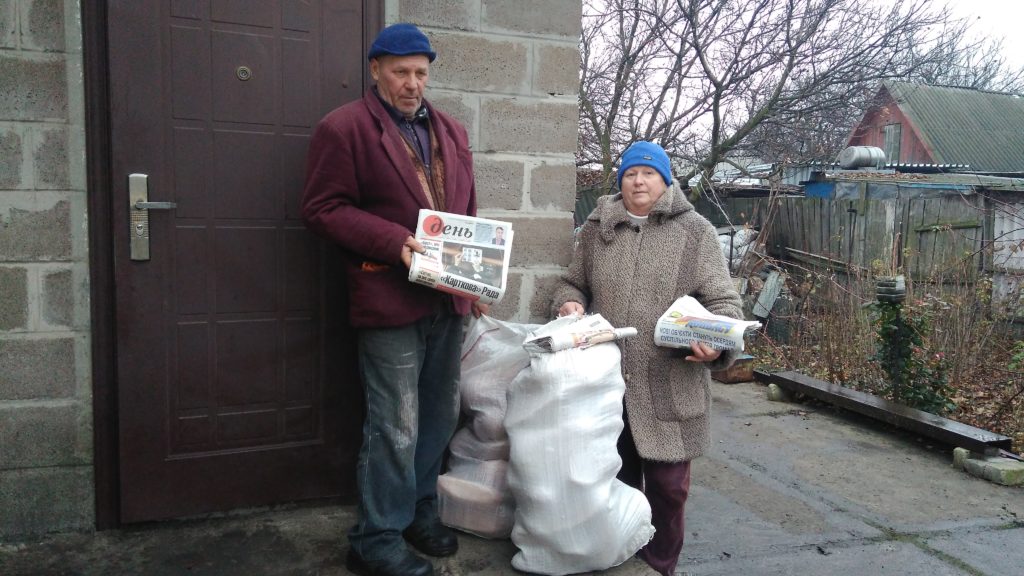 Привезла книги на украинском языке в библиотеку прифронтового поселка Красногоровка (Ясиноватский район).