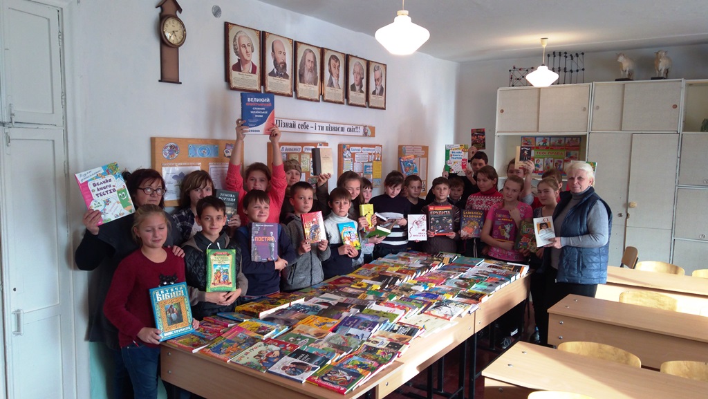 Сегодня передала в школьную библиотеку 170 книг на украинском языке, которые мы с вами собирали всем миром! Дети и учителя были в восторге, они час разглядывали книги и не верили своим глазам. Еще ни разу в их школу столько книг не приходило.