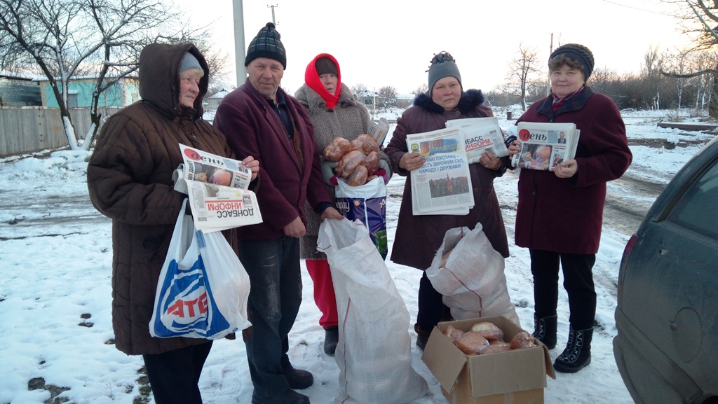Привезла свежий хлеб и газеты «День», «Вісті Донбасу» и «Донбасс Информ» в прифронтовые сёла в районе Донецкого аэропорта: Водяное и Невельское.