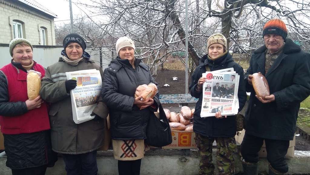 Сегодня привезла хлеб и газеты «День» и «Вісті Донбасу» в прифронтовое село Водяное (район ДАП).