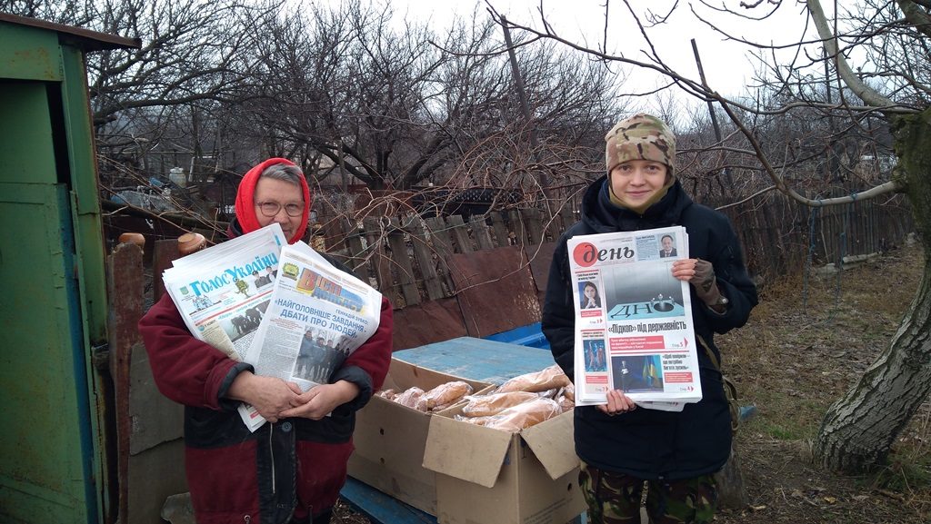 Сегодня привезла хлеб и газеты «День», «Вісті Донбасу» и «Голос України» жителям прифронтового посёлка Каменка и в сёла Весёлое и Невельское.