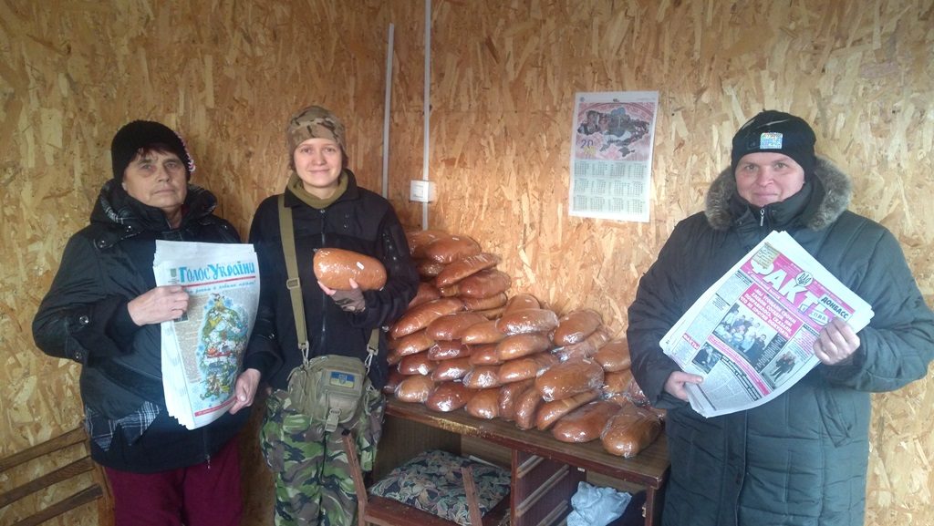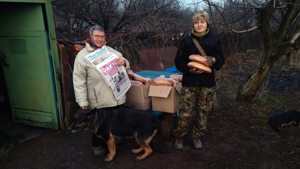 Привезла хлеб и газеты «Голос України» и «Факты» в прифронтовые сёла Каменка и Весёлое.