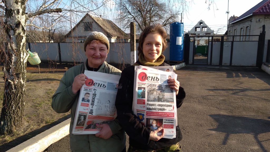 Доставила два номера газеты «День» жителям прифронтовой Марьинки, Авдеевки, Георгиевки, Первомайского, Нетайлово, Карловки, Водяного, Тоненького, Орловки и Уманского.