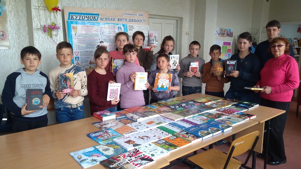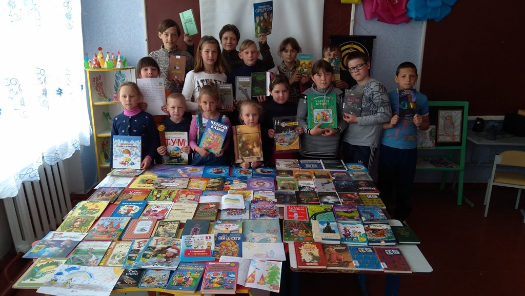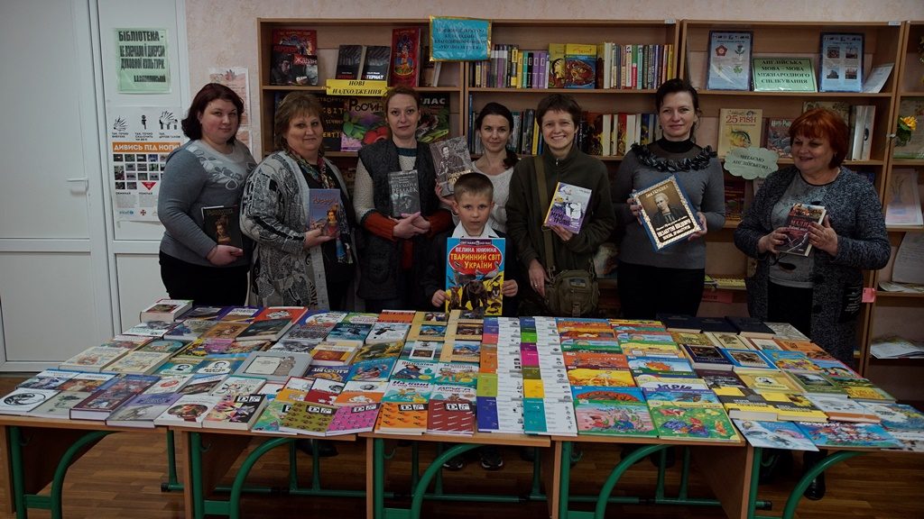 В апреле передала более 1000 замечательных книг на украинском языке в библиотеки прифронтовых школ с. Новобахмутовка, с. Галициновка, поселка Степное, поселка Верхнеторецкое, в школы №17 и №18 и библиотеку пгт. Новгородское, в школу №13 города Украинск и в школу №5 города Торецк!