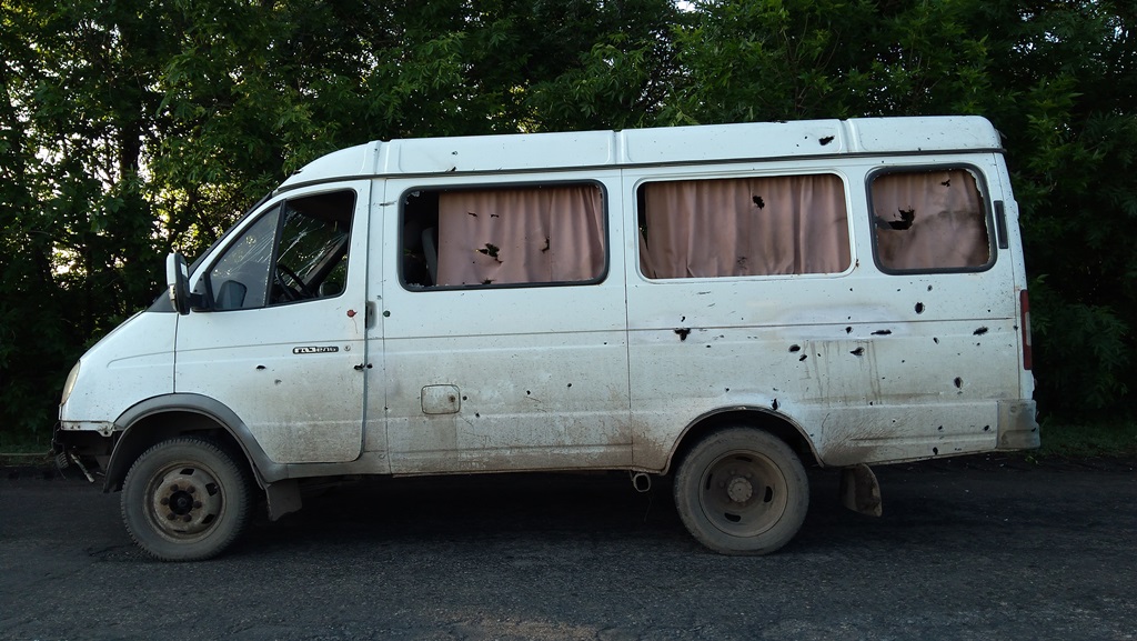 Сегодня днем несколько снарядов за пару минут превратили Газель в решето! Повезло, что никого не ранило и не убило! Автомобиль использовался медиками для повседневной работы в зоне проведения ООС, его уже отбуксировали в автосервис. Будем думать, как ее ремонтировать!
