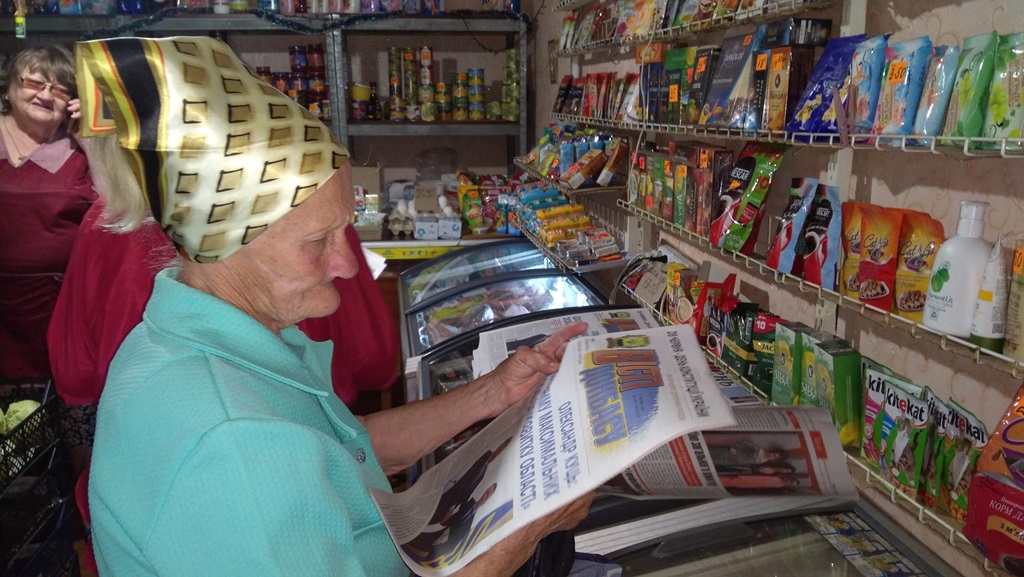 Привезла лекарства и украинские газеты героине моего видео «Аналитика про Путина» бабушке Ане в прифронтовое село Водяное (район ДАП).