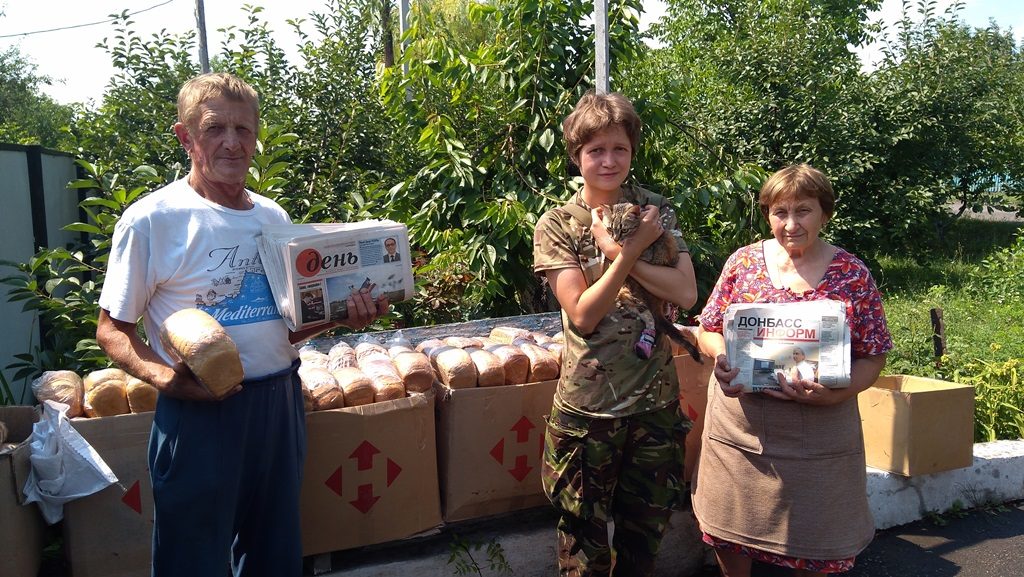 Привезла свежий хлеб и газеты «День» и «Донбасс Информ» жителям прифронтового села Водяное (район ДАП).