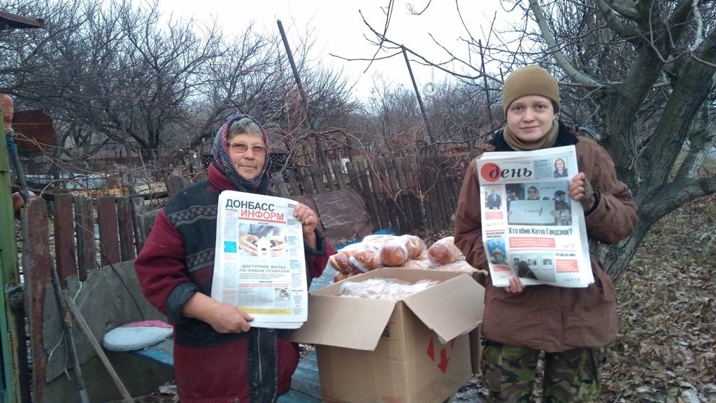 Доставила 8000 газет «День» и 2800 газет «Донбасс Информ» в Авдеевку, Марьинку, Красногоровку, Верхнеторецкое, Новгородское, Орловку, Ласточкино, Тоненькое, Александрополь, Новобахмутовку, Новоселовку, Керамик, Семёновку, Карловку, Первомайское, Нетайлово, Победу, Георгиевку, Максимильяновку, Уманское, Красногоровку (Ясиноватский район).
