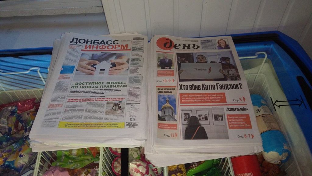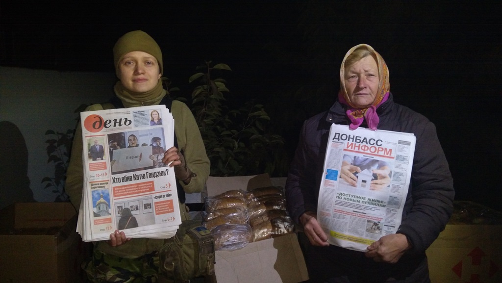 Доставила 8000 газет «День» и 2800 газет «Донбасс Информ» в Авдеевку, Марьинку, Красногоровку, Верхнеторецкое, Новгородское, Орловку, Ласточкино, Тоненькое, Александрополь, Новобахмутовку, Новоселовку, Керамик, Семёновку, Карловку, Первомайское, Нетайлово, Победу, Георгиевку, Максимильяновку, Уманское, Красногоровку (Ясиноватский район).