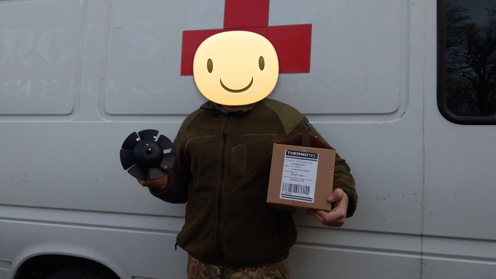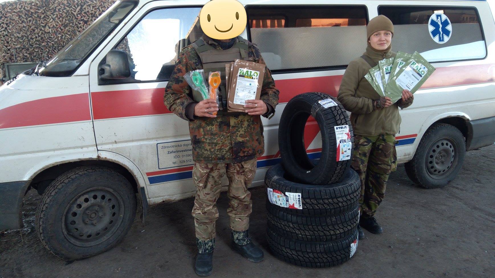 Передала медикам на передовую два комплекта зимних шин для автомобилей Скорой помощи, десять окклюзионных наклеек Halo, две ларингеальные маски и вентилятор для печки автомобиля медслужбы.