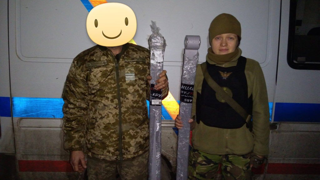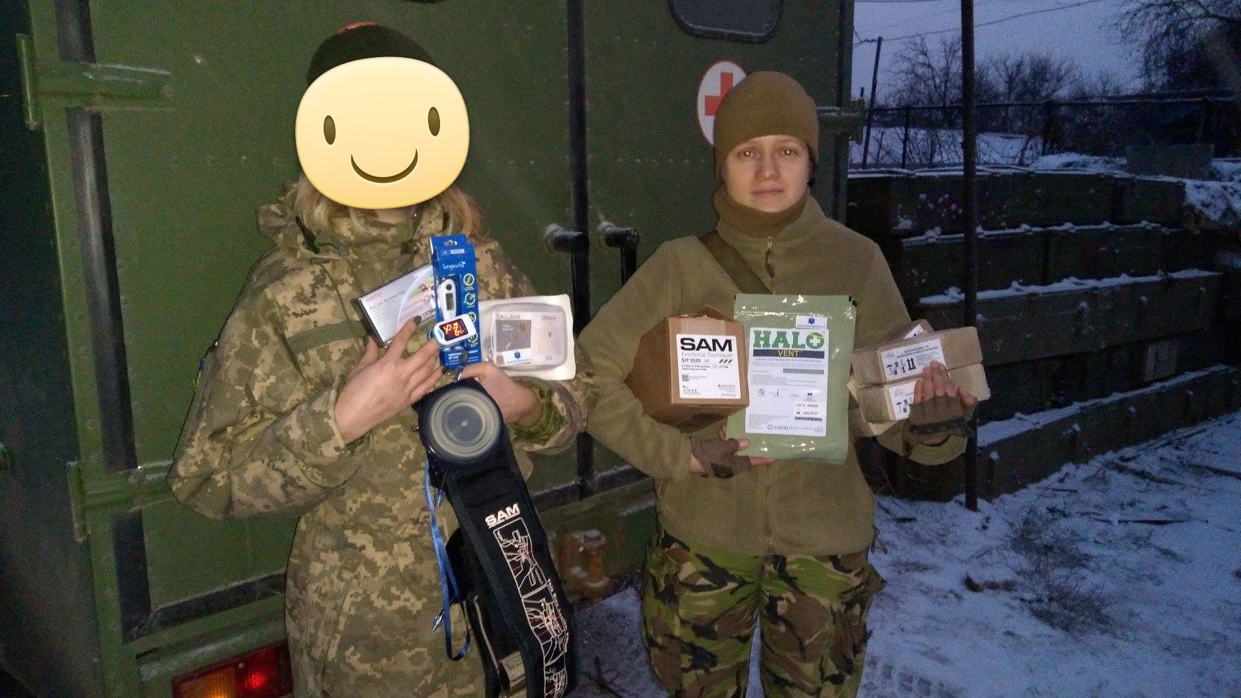 Передала медикам на передовую два узловых турникета SAM, катетер костного доступа, три пульсоксиметра, три окклюзионных наклейки Halo, электронный термометр, бальзам для губ, рессоры для Скорой Мерседес!