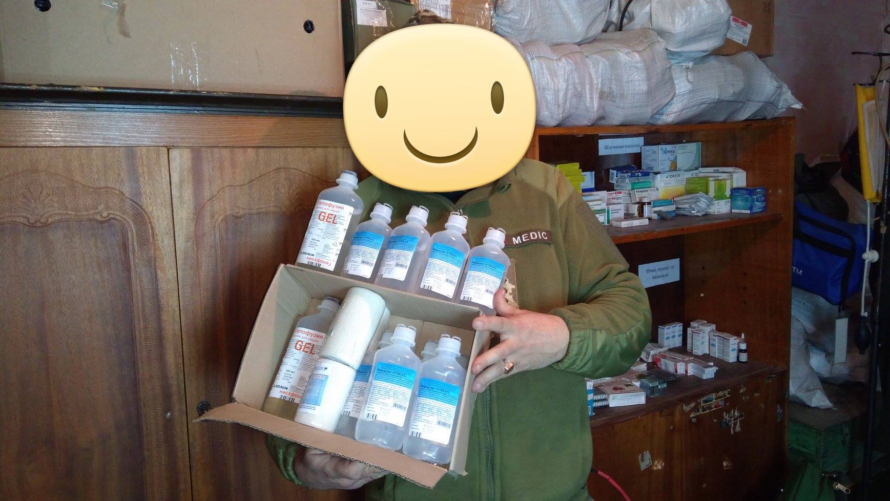 Передала медикам 10 флаконов раствора Рефортан, 2 флакона раствора Гелофузин, 4 эластичных бинта и газеты «День»!