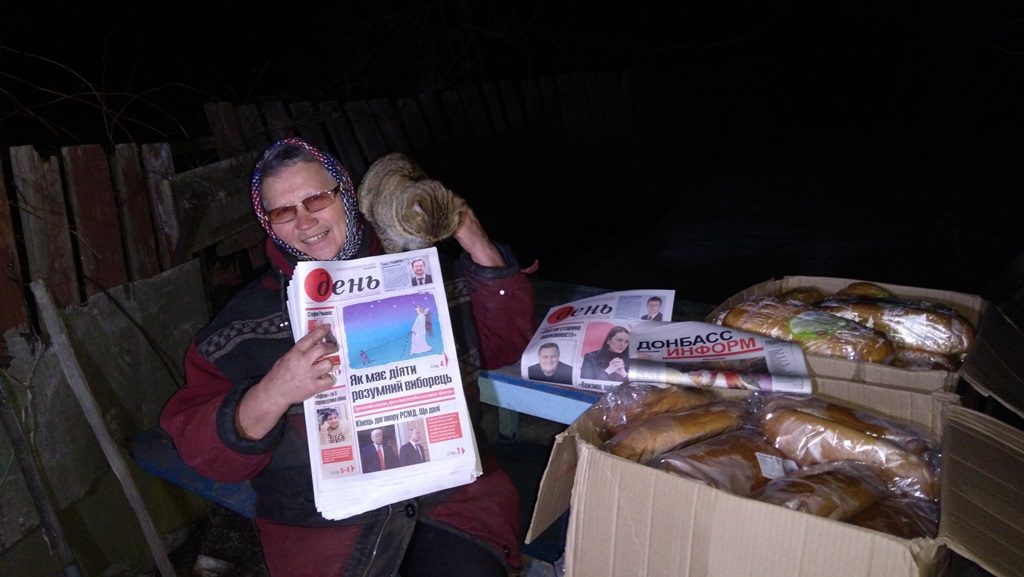 Доставила хлеб и газеты «День» и «Донбасс Информ» жителям прифронтового поселка Каменка и села Весёлое!