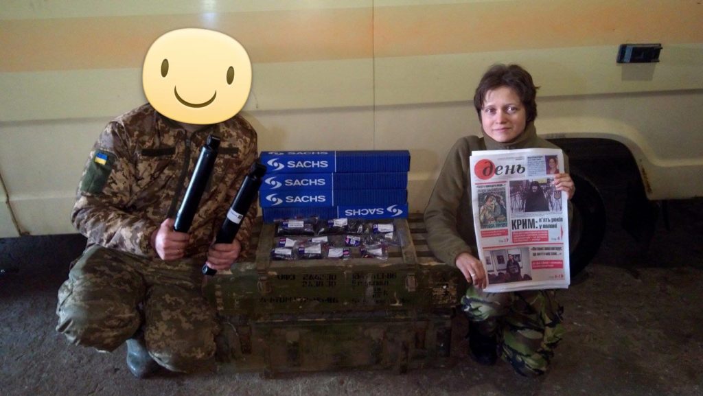Доставила на передовую запчасти для ремонта Скорой Мерседес Т1 210 — амортизаторы, сайлентблоки рессор, сайлентблоки и втулки стабилизатора.