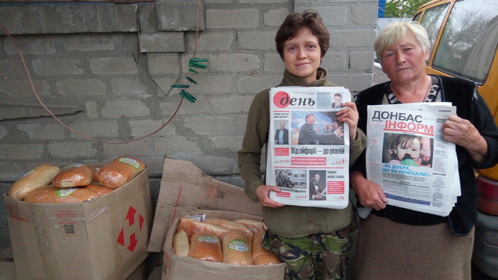 Доставила хлеб и газеты «День» и «Донбас Інформ» жителям прифронтового села Водяное (район ДАП).