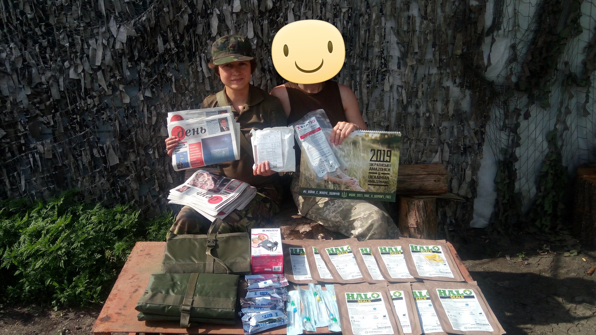 Доставила медикам на передовую: три системы Xstat 30, две системы внутрикостного доступа FAST1, двадцать две окклюзионные наклейки Halo, два пульсоксиметра, тонометр, декомпрессионные иглы, противоожоговые бинты, мягкие носилки, израильские бандажи, главный тормозной цилиндр на УАЗ, календари «Українські Амаzонки» и газеты «День»!