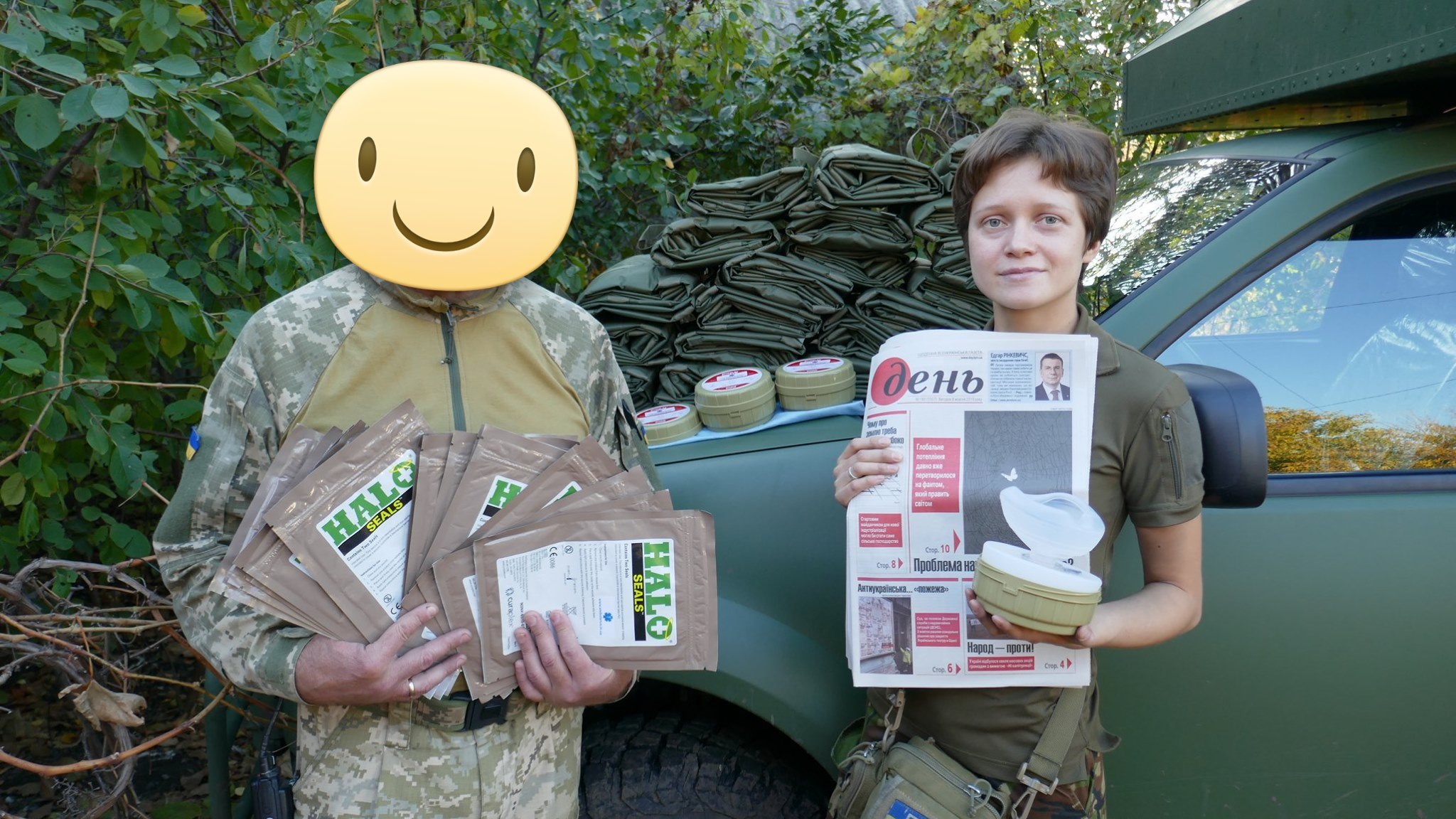 ✅ Передала военным медикам три мешка АМБУ, тридцать мягких носилок, тактические шины разных размеров, пятнадцать окклюзионных наклеек HALO, противоожоговые бинты, тактические ножницы, запчасти для Скорой и газеты «День»!