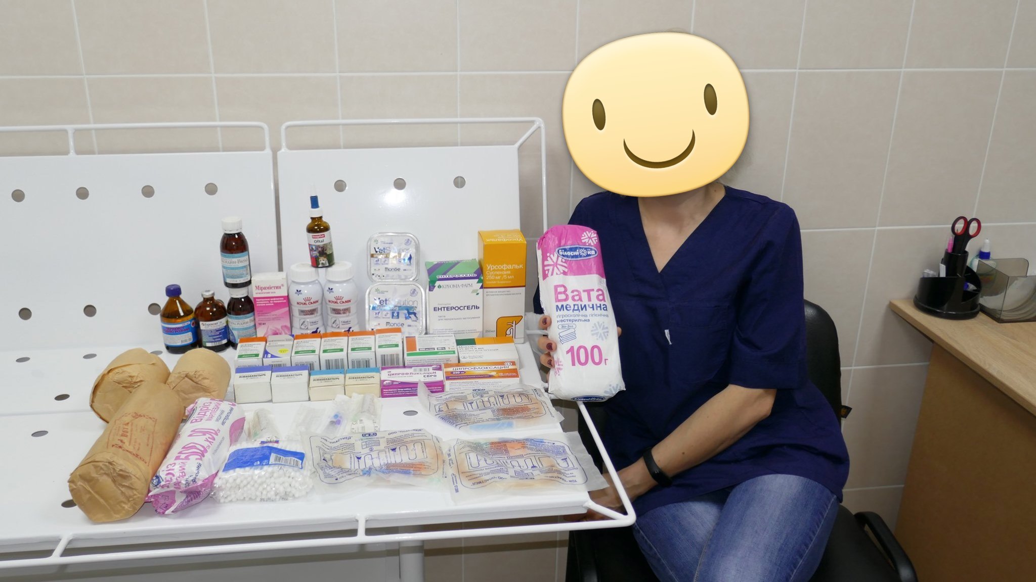 Передала в ветклинику целую гору лекарств и перевязочных средств собранных по акции «Ревизия домашних аптечек»!