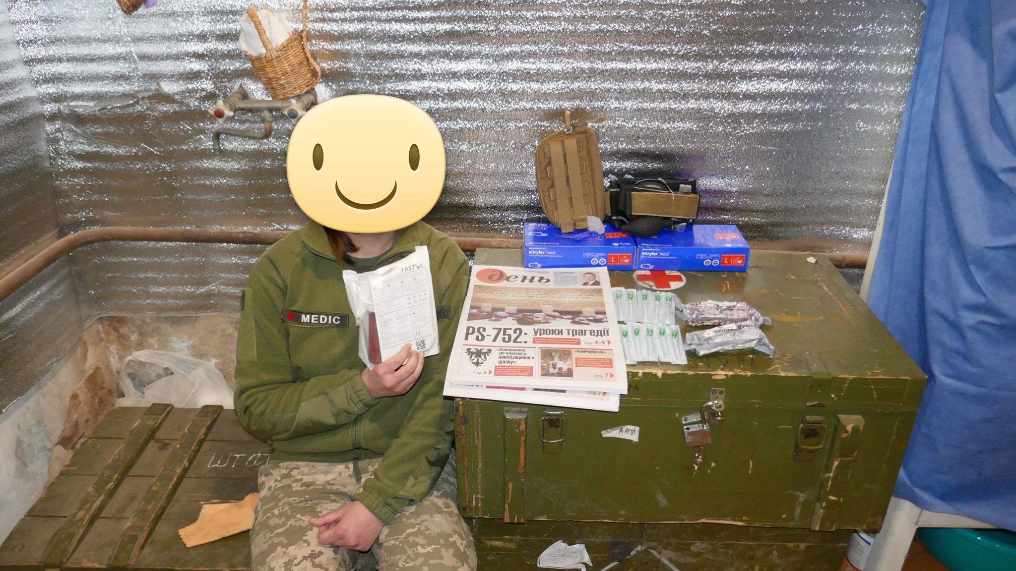 Передала военным медикам узловой турникет SAM Junctional Tourniquet, систему внутрикостного доступа FAST1, два бандажа Battle Bandage, две коробки перчаток, внутривенные катетеры, газеты «День» и три подсумка UTactic Overload Medical Pouch для узлового турникета SAM Junctional Tourniquet!