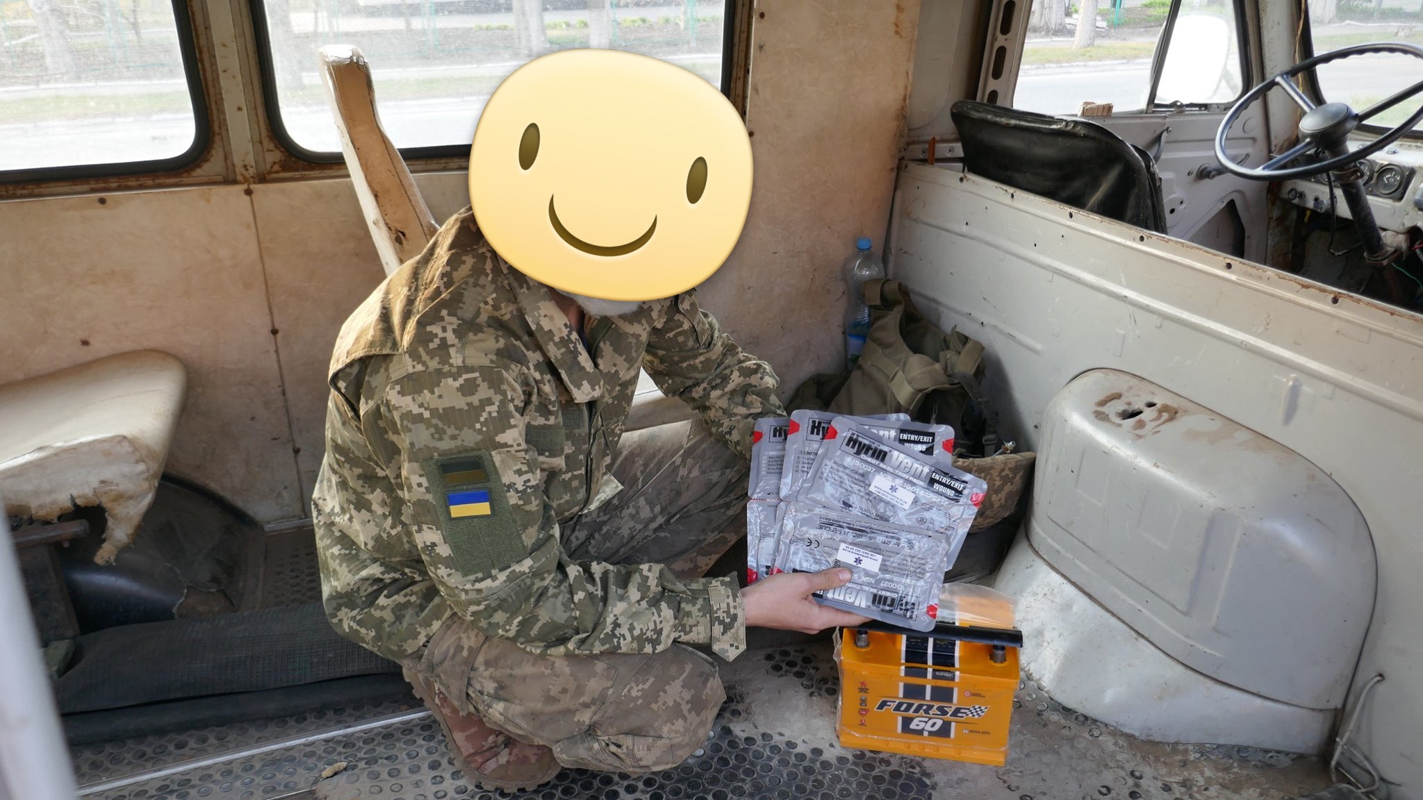 Передала военным медикам, работающим на передовой, аккумулятор и КПП для Скорой УАЗ, а также 6 окклюзионных наклеек Hyfin Vent, 3 бескаркасных носилок и 10 тактических шин!