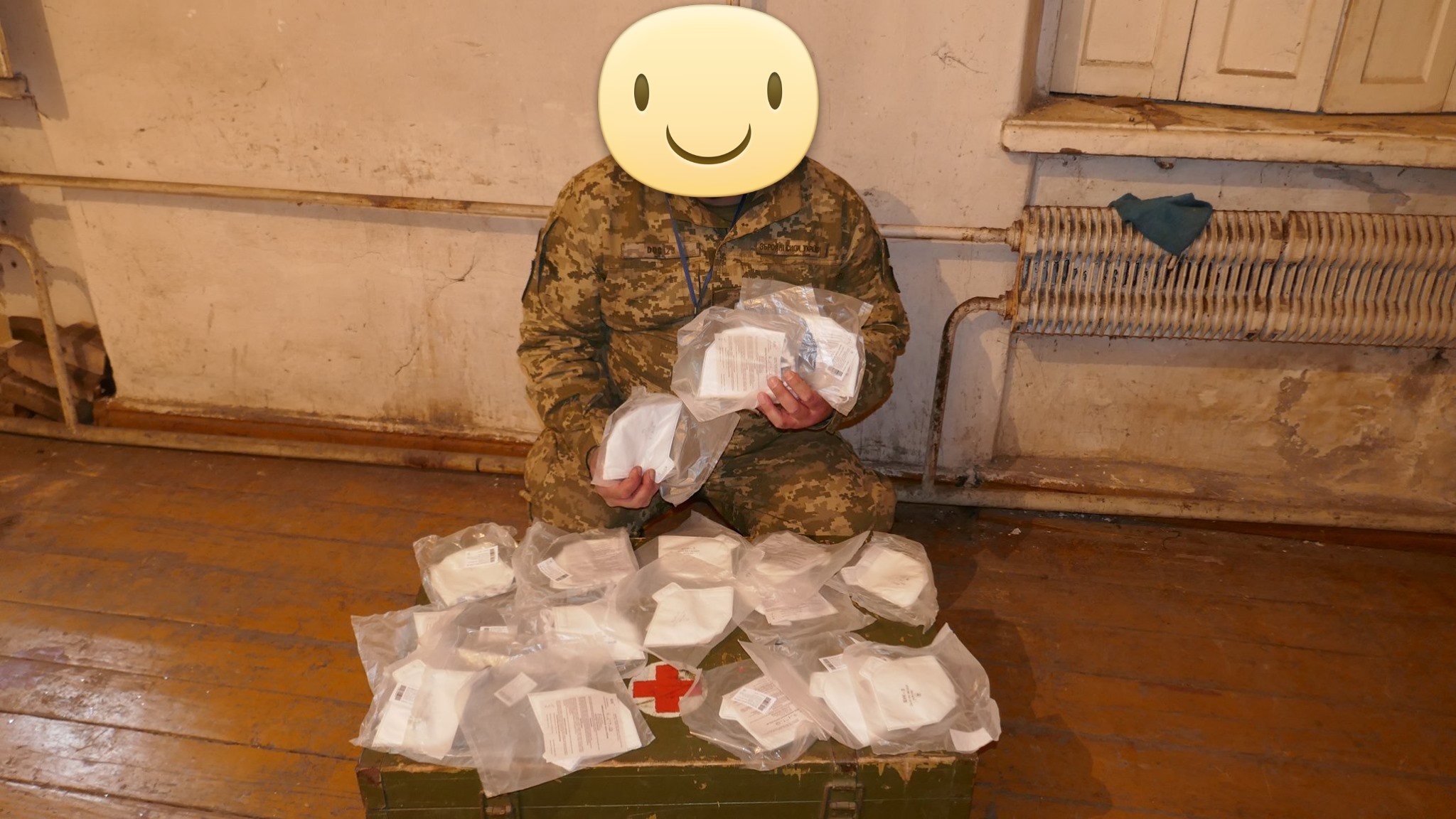 Передала военным медикам медицинский тактический рюкзак Utactic, 3 системы внутрикостного доступа FAST1, ампульницу Utactic, медицинскую сумку Utactic, комплект тактических шин, 5 ножниц, 5 мягких носилок, 50 респираторов ffp3 и антисептик, 2 окклюзионные наклейки Hyfin Vent, радиатор, сумку и вакуумную систему для капельницы Infu-Surg!