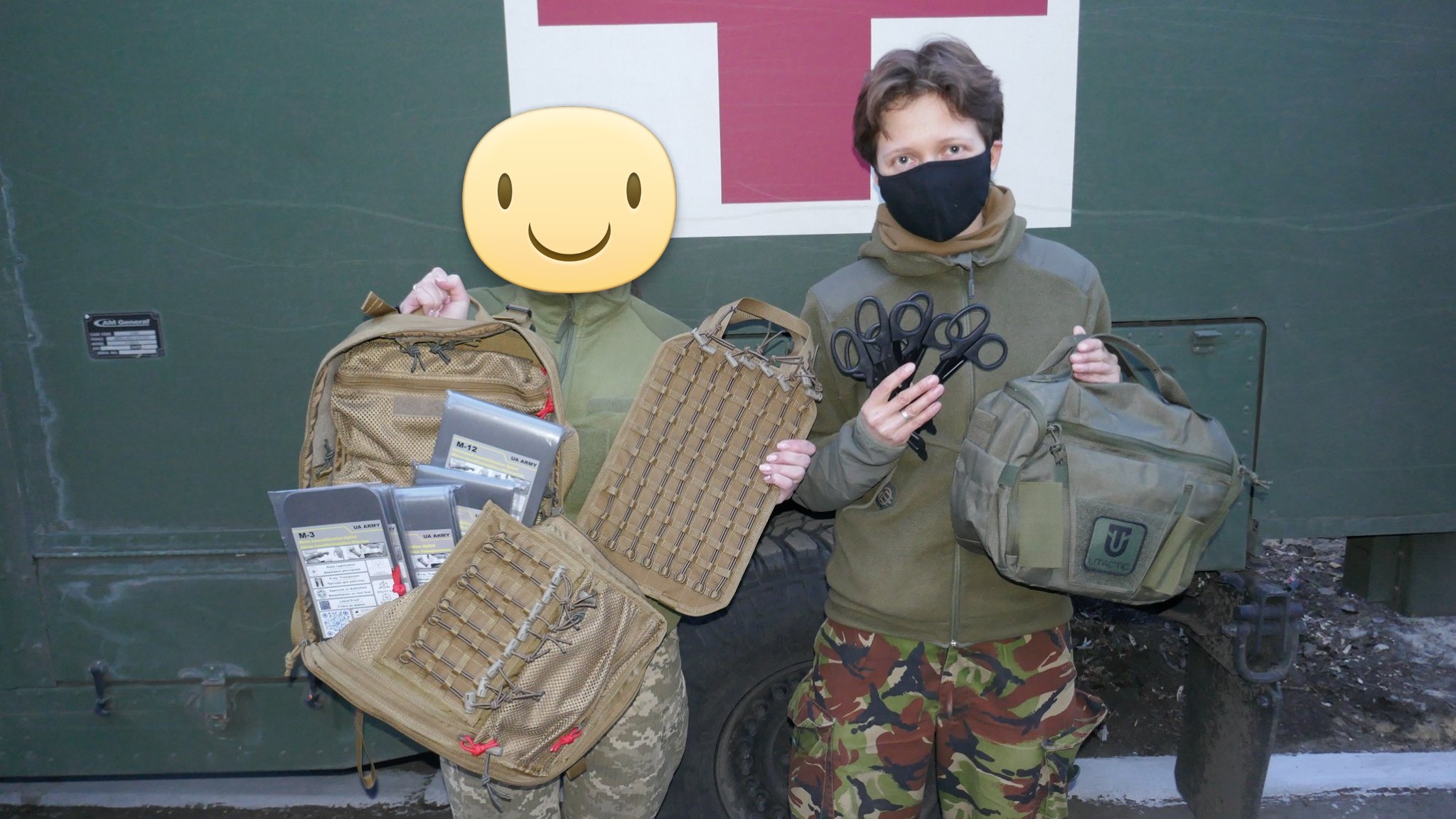 Передала военным медикам медицинский тактический рюкзак Utactic, 3 системы внутрикостного доступа FAST1, ампульницу Utactic, медицинскую сумку Utactic, комплект тактических шин, 5 ножниц, 5 мягких носилок, 50 респираторов ffp3 и антисептик, 2 окклюзионные наклейки Hyfin Vent, радиатор, сумку и вакуумную систему для капельницы Infu-Surg!
