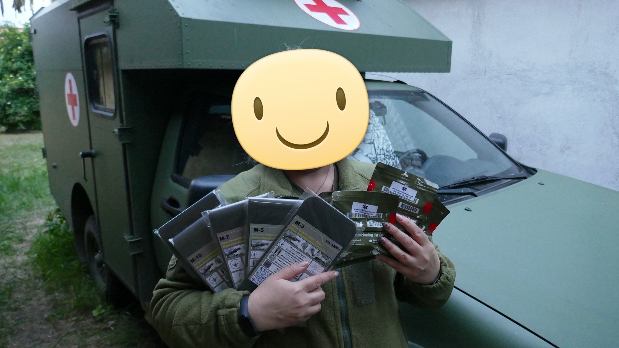 ✅ Доставила медикам на передовую: узловой турникет JETT, два медицинских тактических рюкзака Utactic, три медицинские тактические сумки Utactic, два мешка АМБУ Cyclone pocket BVM, две ампульницы Utactic, двое тактических носилок Utactic со стропой и карабином, пять мягких носилок, три эвакуационные стопы-кольца, шестнадцать противожоговых бинтов, стетоскоп, пять тонометров, одну американскую водонепроницаемую ампульницу, одну маску I-Gel, четыре накладки на глаз, два пульсоксиметра, двое тактических ножниц, два налобных фонарика, два комплекта тактических шин, три венозных жгута BOA, медицинские перчатки, а также комплект летних шин!