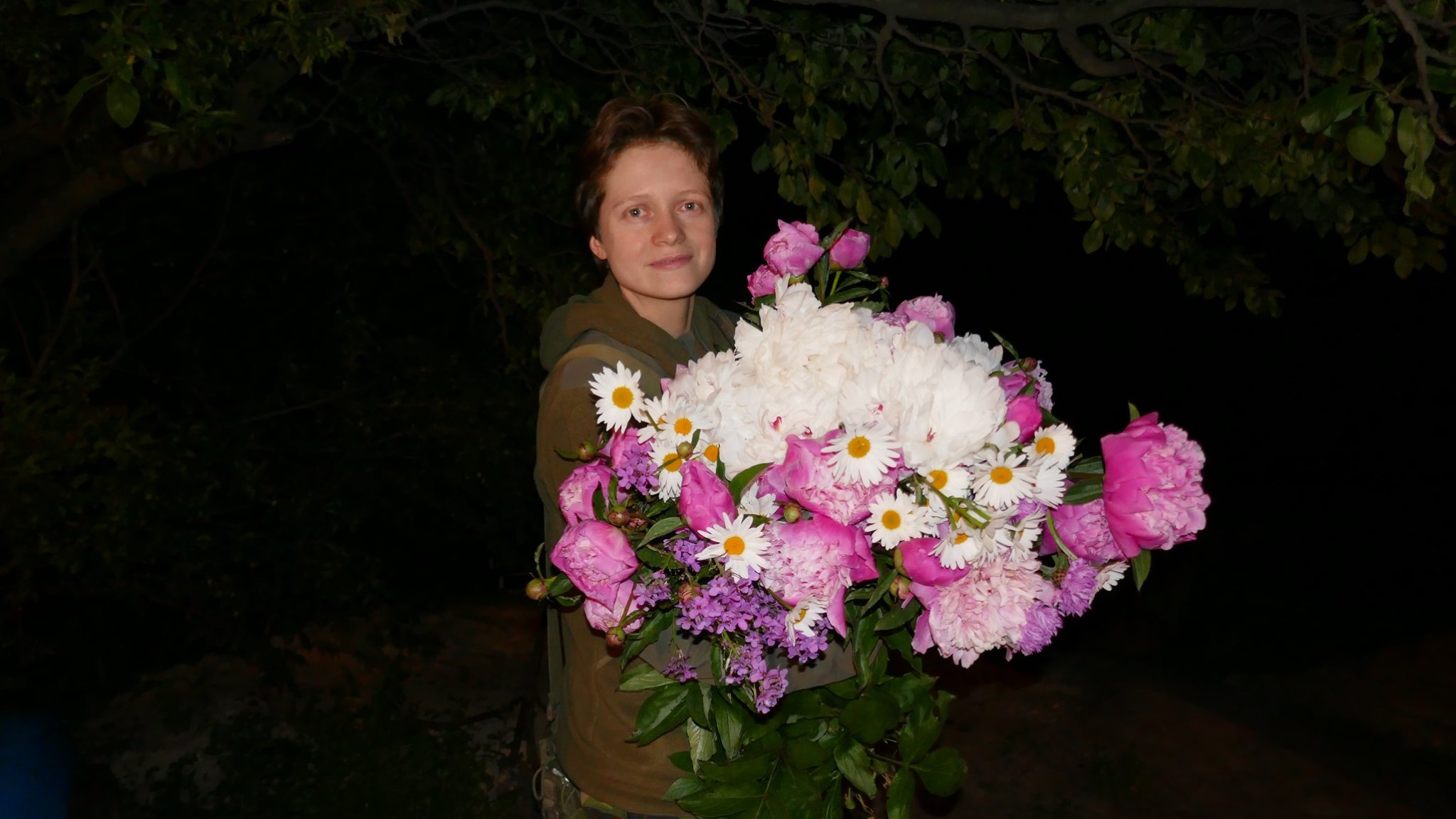 А поздно вечером меня попросили заехать в гости бойцы еще одного подразделения и вручили мне огромный букет цветов!