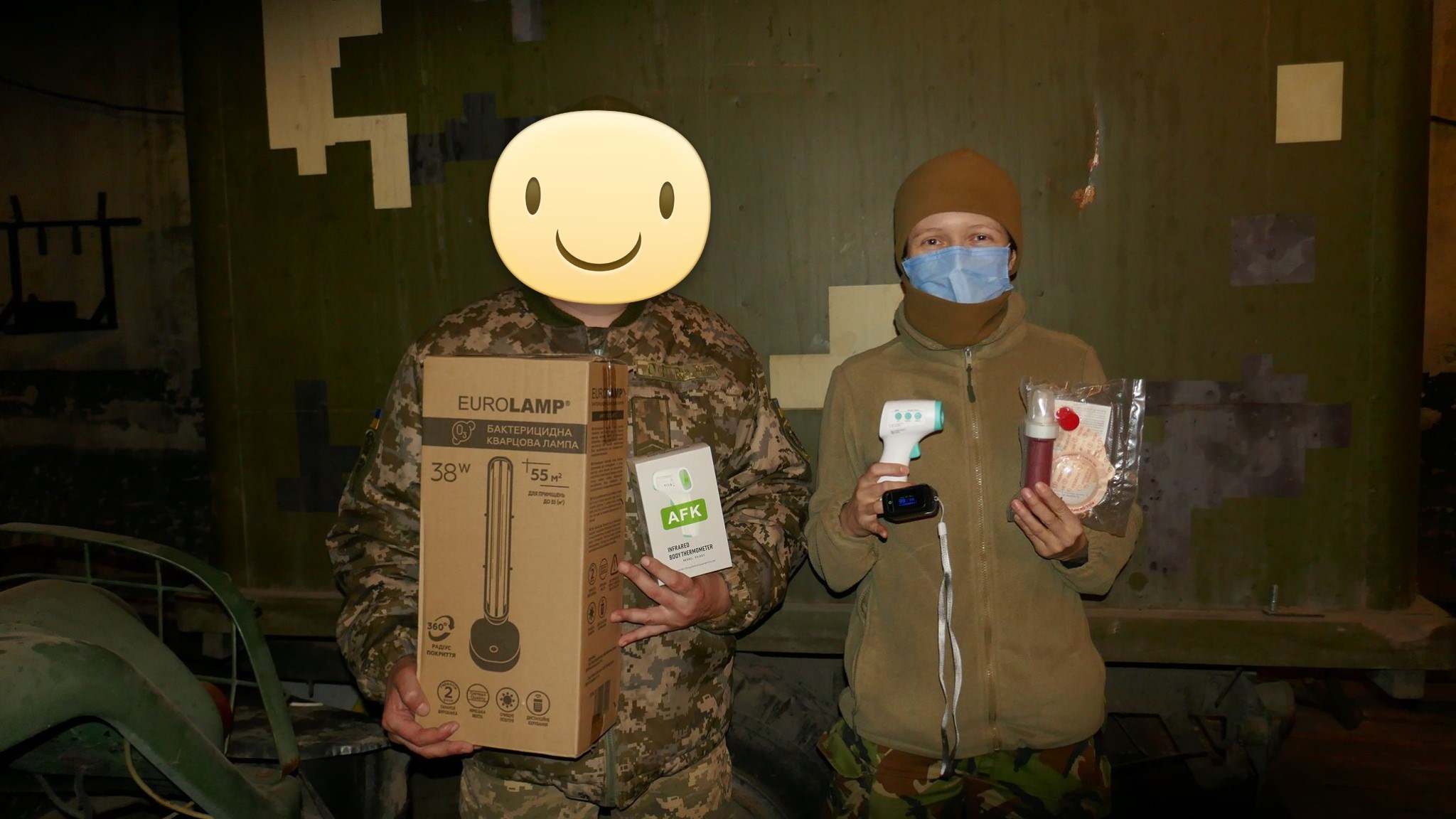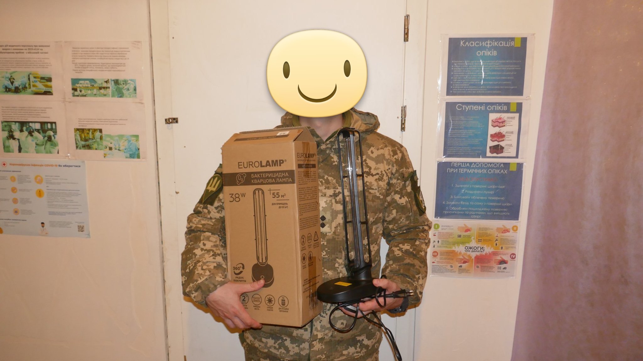 Кроме бактерицидных ламп медики получили: 3 бесконтактных термометра, систему внутрикостного доступа Fast 1, 10 окклюзионных наклеек Halo, 34 противоожоговых бинта, 10 щитков на глаз, венозный жгут BOA, 2 подсумка для капельниц, 3 подголовника Ambu, 9 налобных фонариков, 5 литров антисептика, 2 пульсоксиметра, тонометр, 2 зимних маскировочных сети, панель-органайзер для медпункта, 3 мягких носилок, хирургические бинты и пластыри!