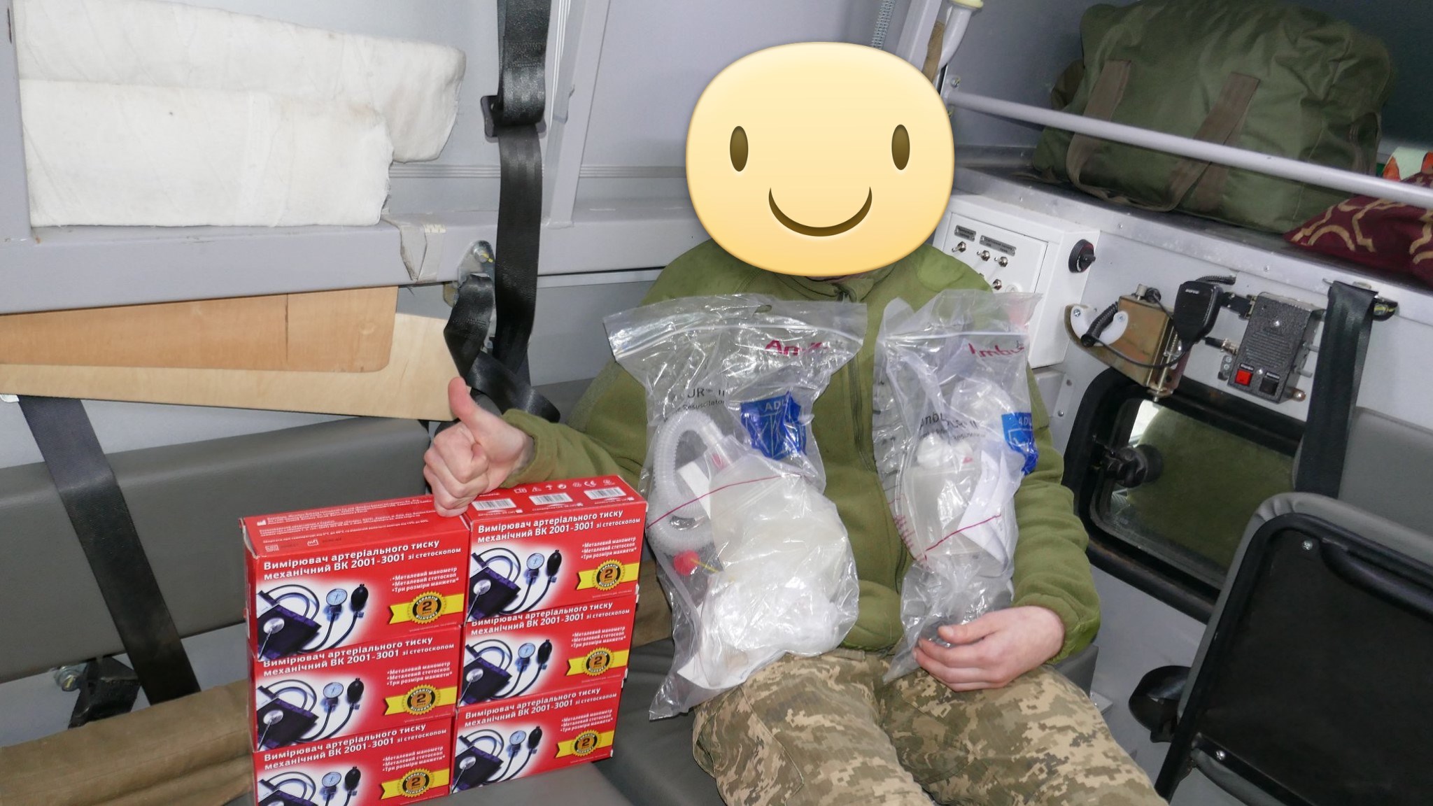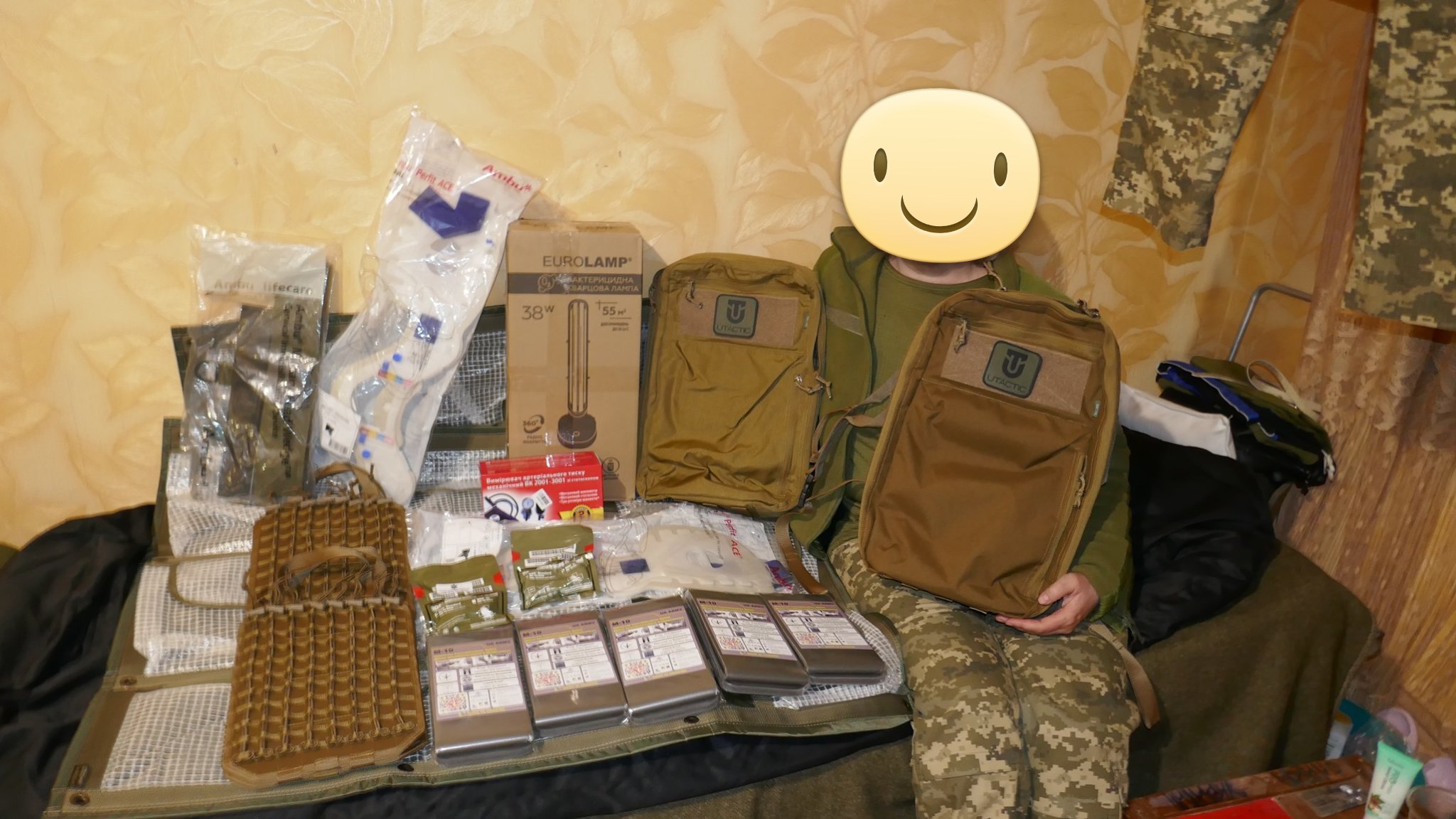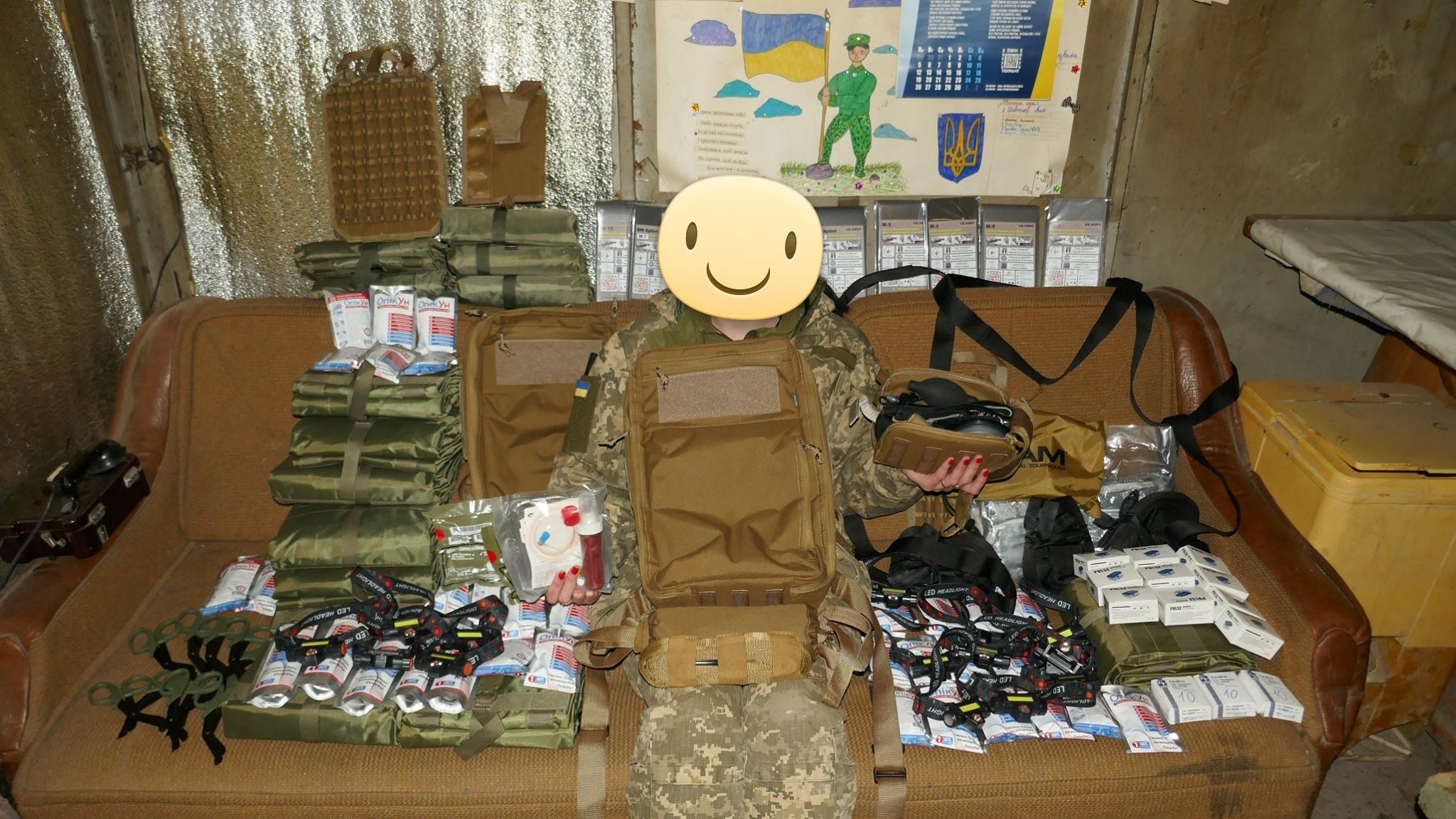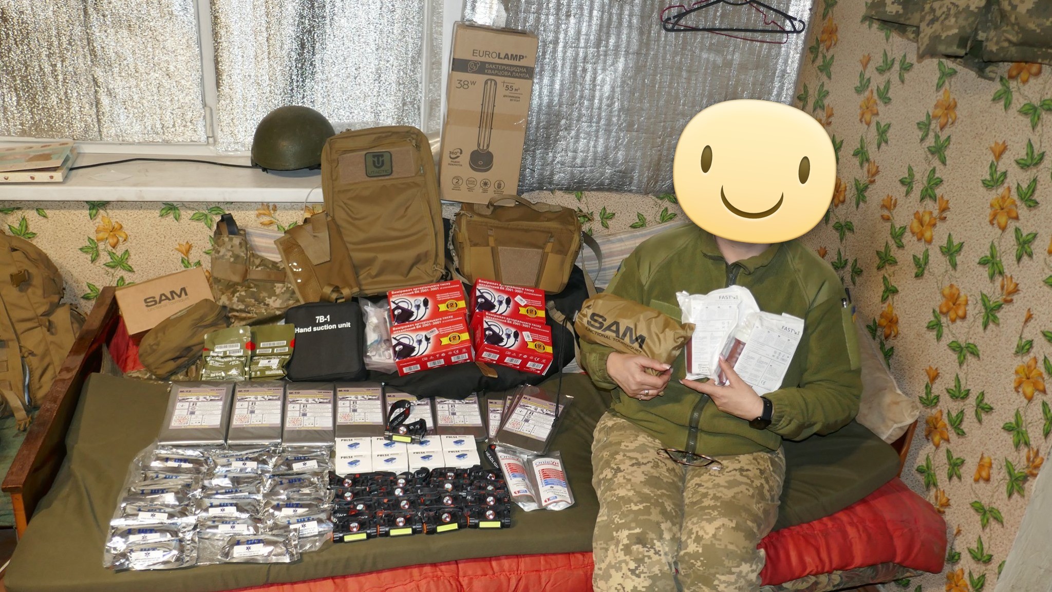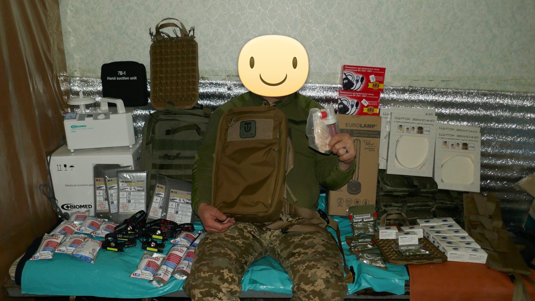 Кроме крутых рюкзаков и сумок фронтовые медики получили: 40 узловых турникетов SAM, более 100 лучших в мире венозных жгутов BOA, более 400 мягких бескаркасных носилок, 1000 противоожоговых бинтов, десятки масок I-GEL, 40 переносных бактерицидных ламп, более 400 налобных фонариков, почти 400 пульсоксиметров, сотни окклюзионных наклеек HALO, более 600 тактических шин разных размеров, 4 автоматических деффибриллятора и многое многое другое! На фото лишь малая часть нашей с вами работы!