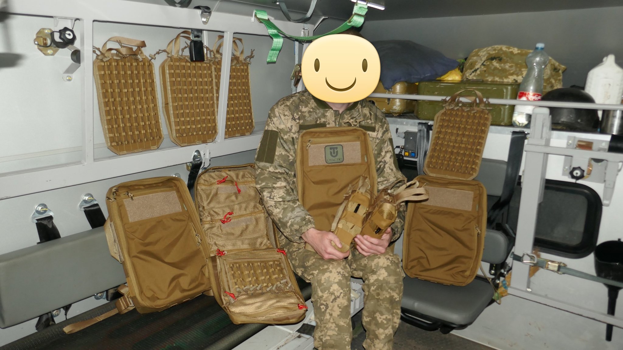 Только представьте себе — 280 медиков, экипированы крутейшими медицинскими рюкзаками и сумками украинского производства взамен допотопных, еще советских, СМСок (СМС — сумка медицинская санитара)!