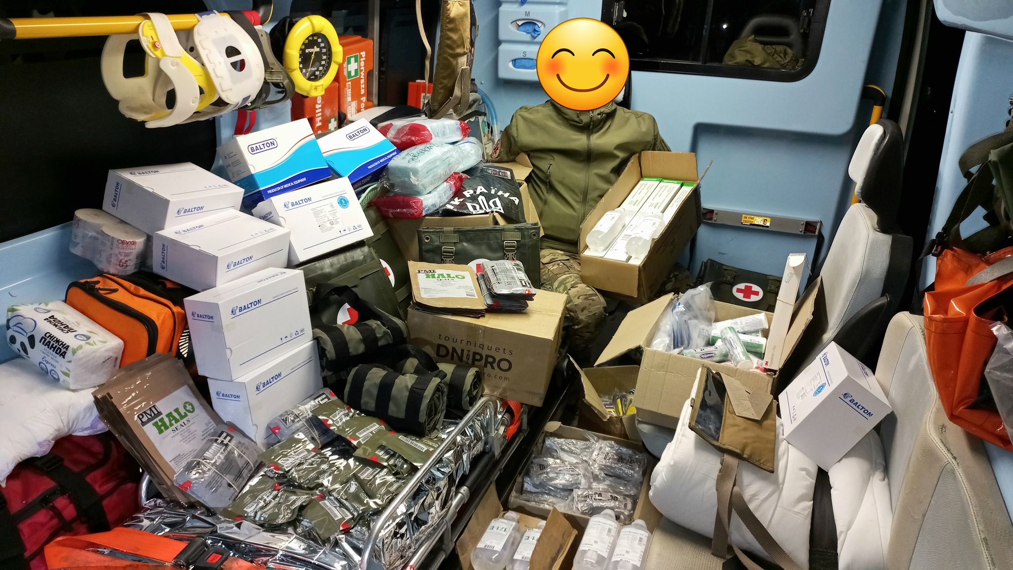 Друзья, каждый день благодаря вашим донатам мы передаем на фронт сотни турникетов, бандажей, гемостатических и противоожоговых бинтов, а также десятки медицинских рюкзаков, систем внутрикостного доступа, узловых турникетов, мягких носилок, панелей-органайзеров, окклюзионных наклеек, мягких шин и многое другое.